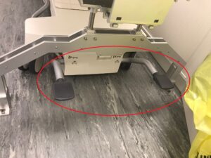 - Place the bed brake back into position 3 DO NOT dock the bed back in the scanner.