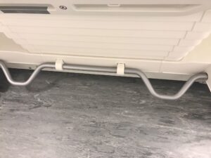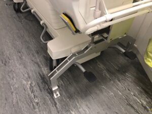 3. Undock the bed using the left pedal at the front, press this pedal all the way down.