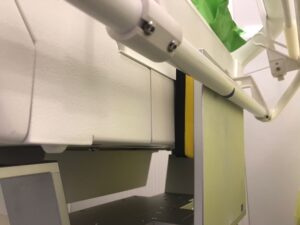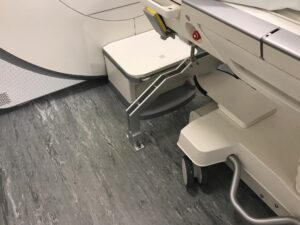 - Remove the covers from the bracket locators on the floor around the bed. ****CAUTION THESE ARE MAGNETIC AND MUST BE KEPT AWAY FROM THE SCANNER****