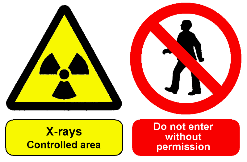 This example is for a Controlled Area where X-rays are used, you must not enter without the permission of a qualified member of the department staff.