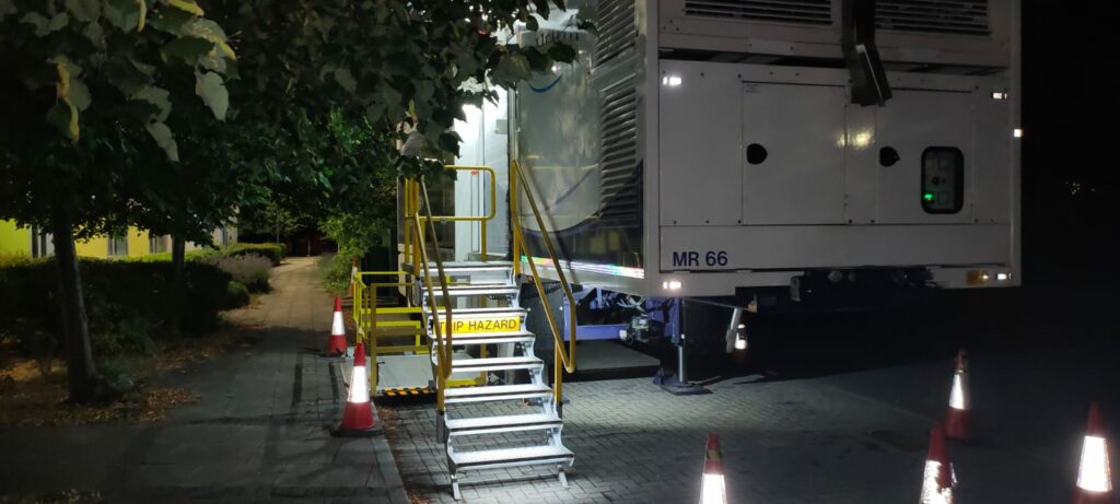 Some of the newer Smit MRI’s now have a rear barrier that MUST be raised as part of the setup and lowered for transport. Any problems must be reported to transport before leaving site
