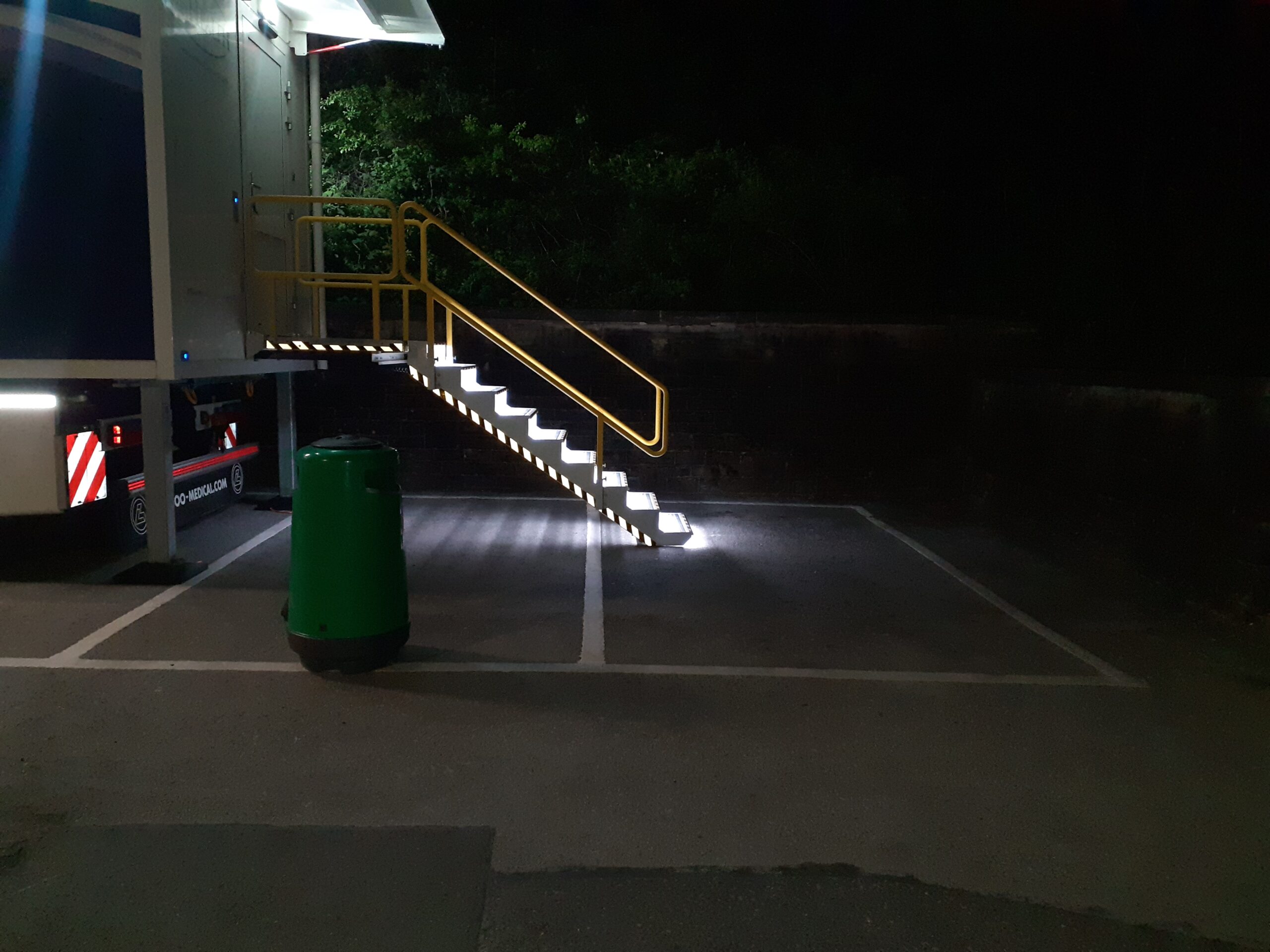 Site Notes: The pad is on the back wall using the last bays to the right. see pics for location. The unit runs on an external generator pack.