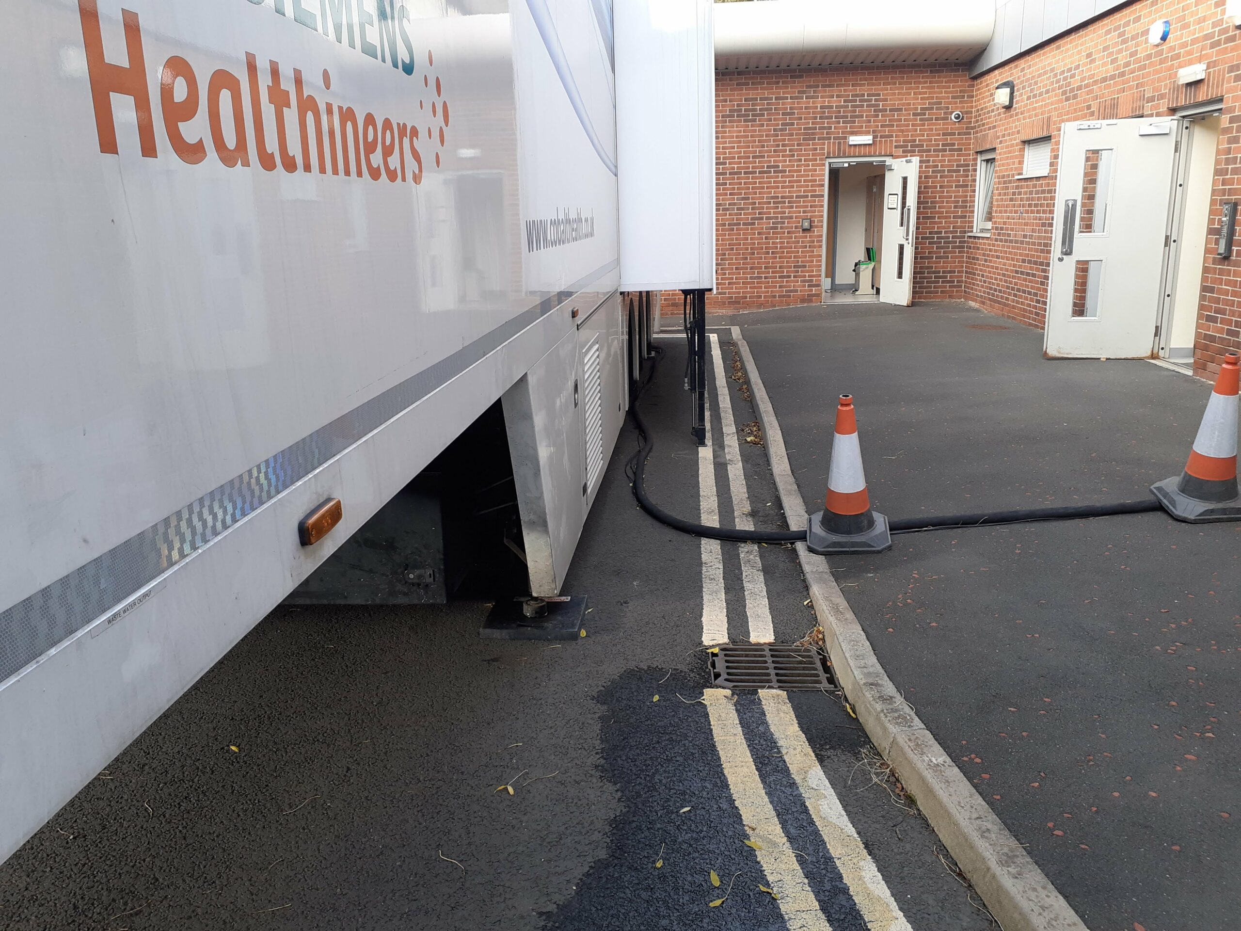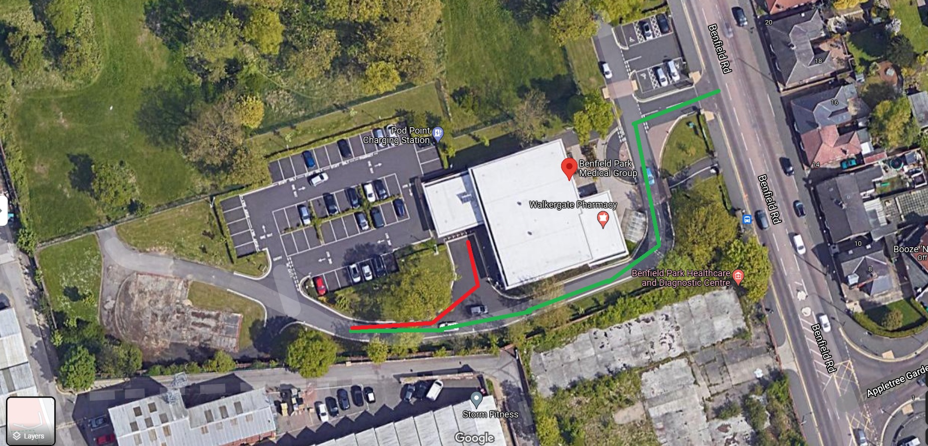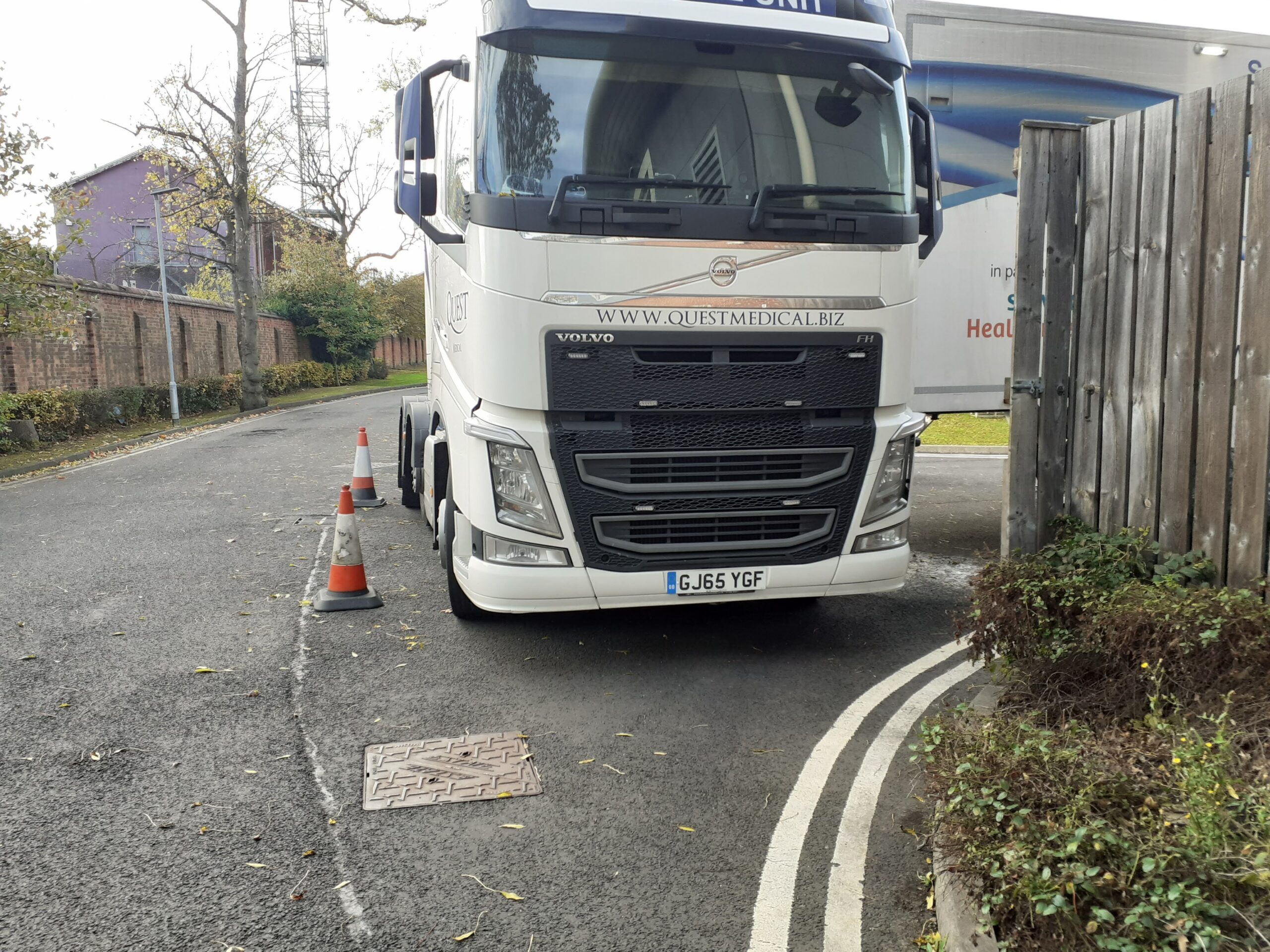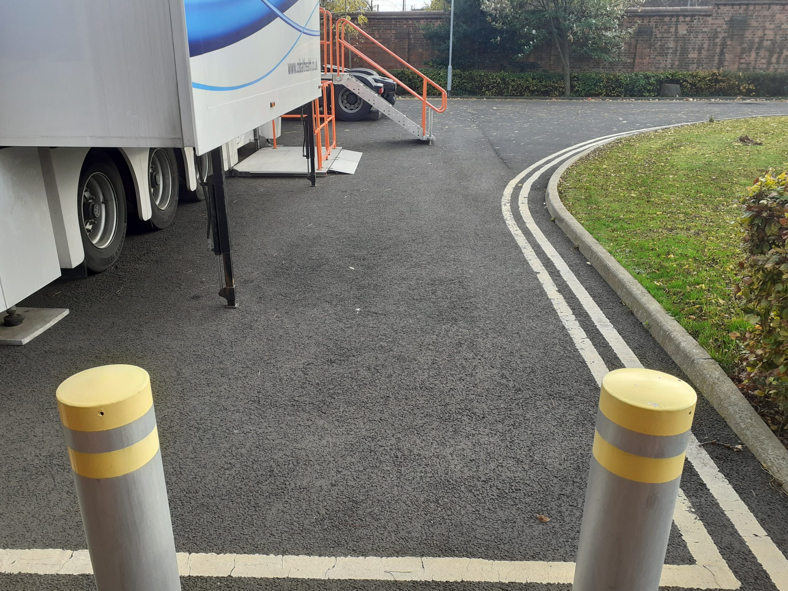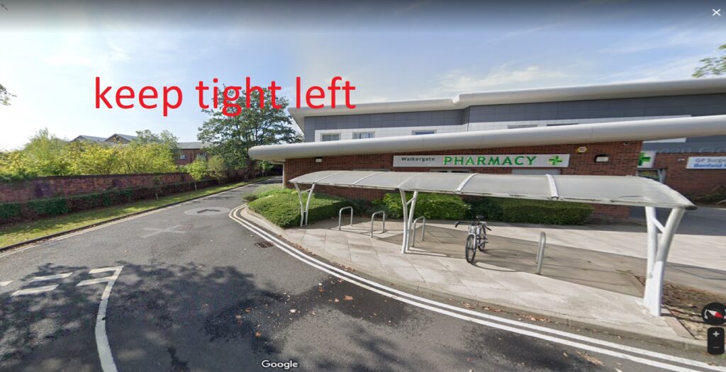 Site Notes: Enter the site and turn left, keep tight to your left and follow the road round to your right, beware of building overhang and cyle store.