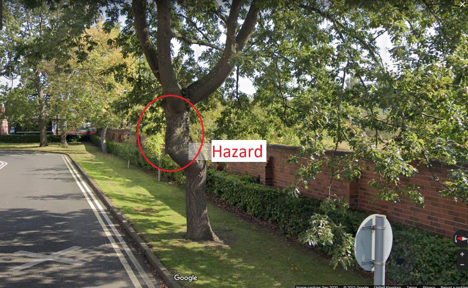 To exit the site you can turn left if you position the trailer close to the offside curb. Beware of the tree on the offside see photo.
