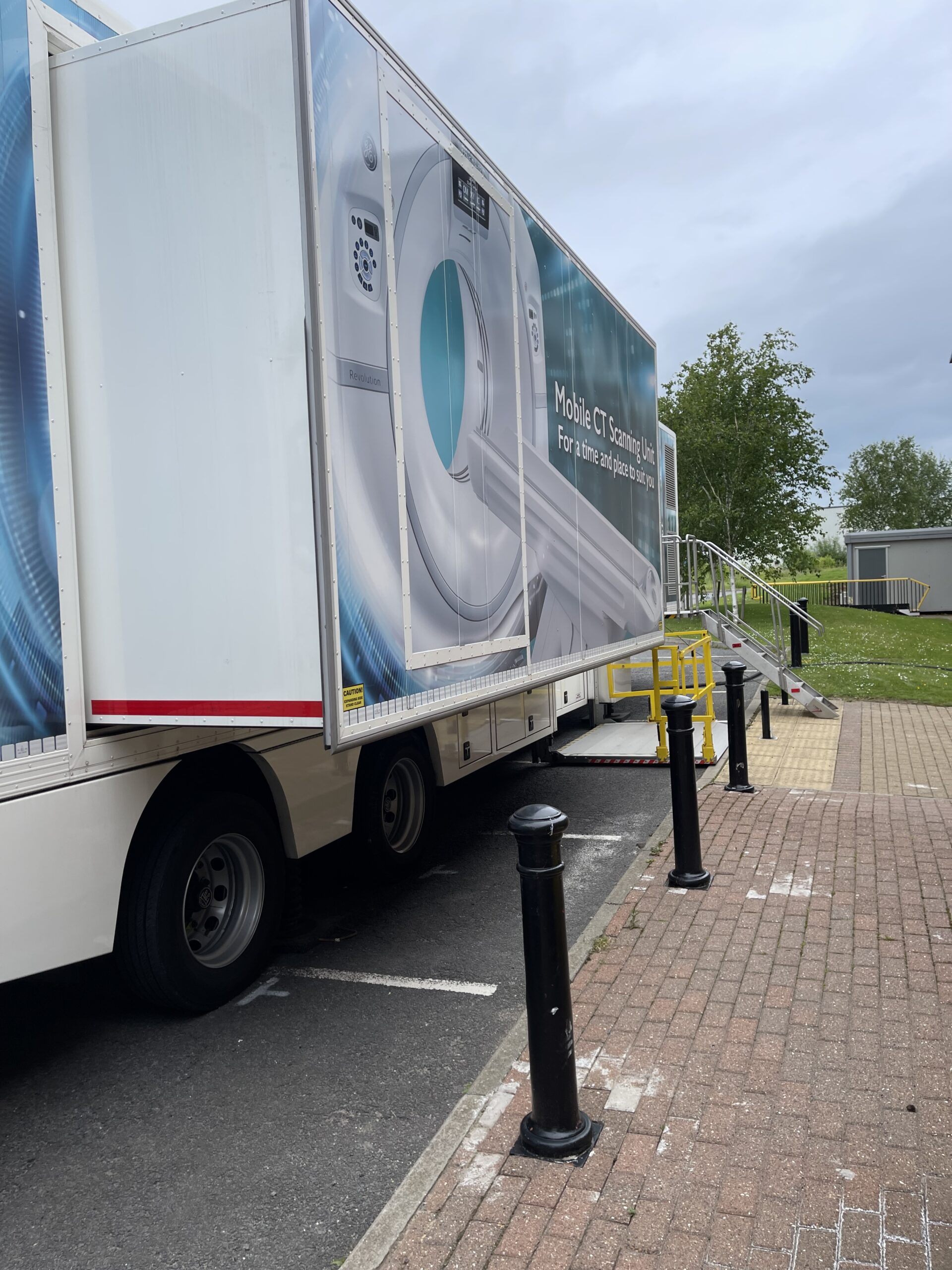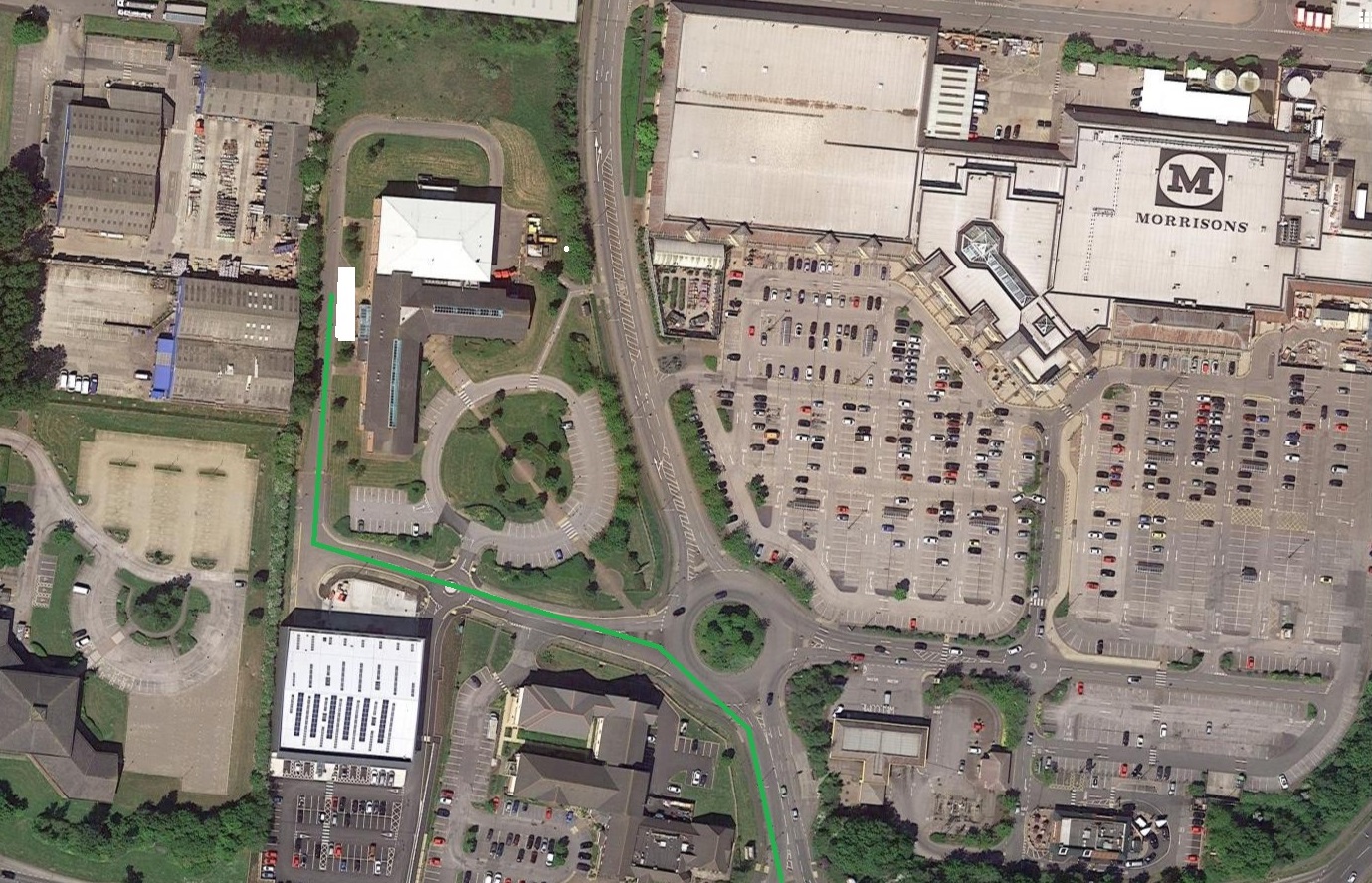 Follow the outer road around the hospital, trailer goes in a layby on your right.