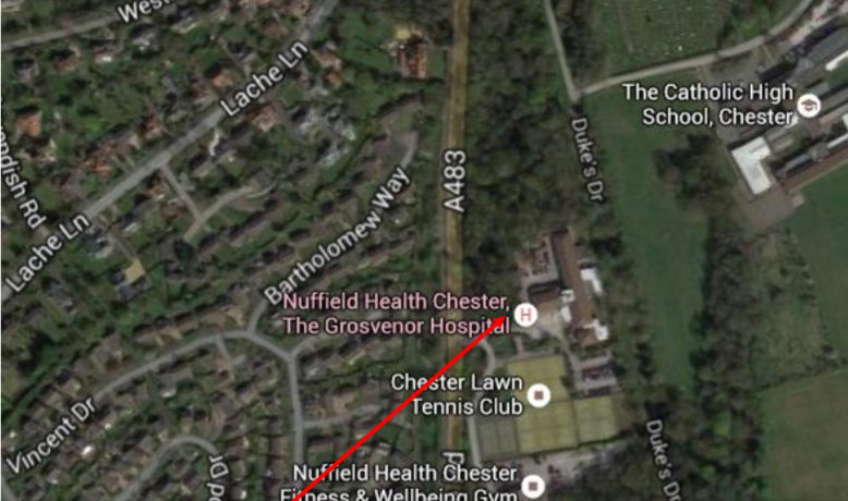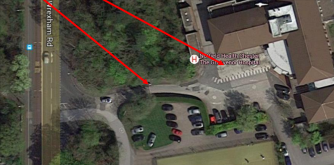 Best Approach: A55 onto A 483 Hospital comes up on your right drive across road and reverse in on your good side