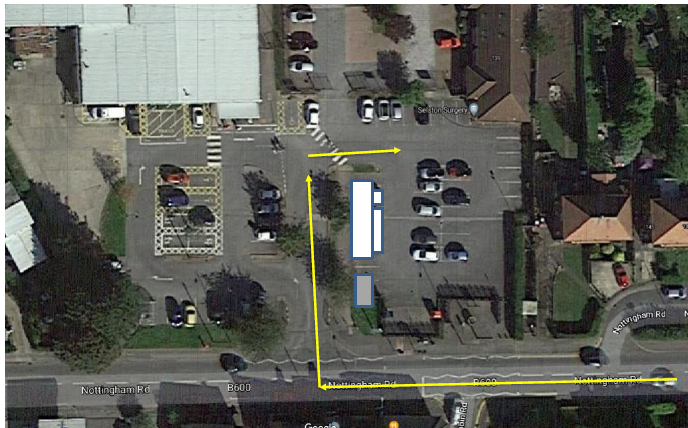 CT reversed in front of genny, support sites to side of car park reversed in.