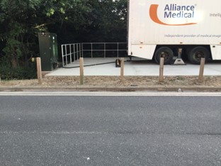 Proceed around hospital anti clockwise past the trailer pad to HGV reversing Point then clockwise back to the pad.