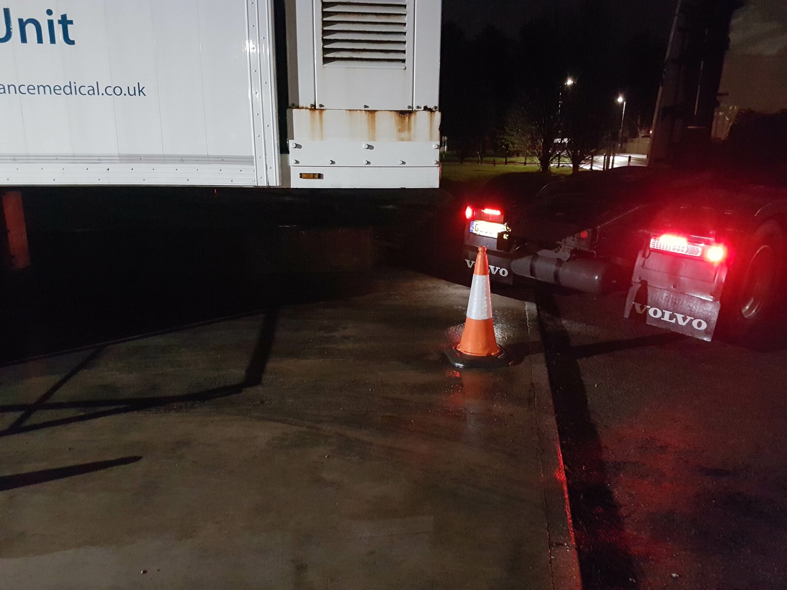 Use telephone connection in data box not on side of cabinet. Call ahead to have cones put out.