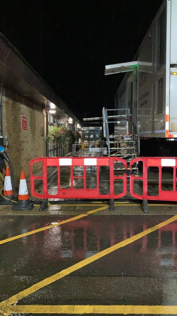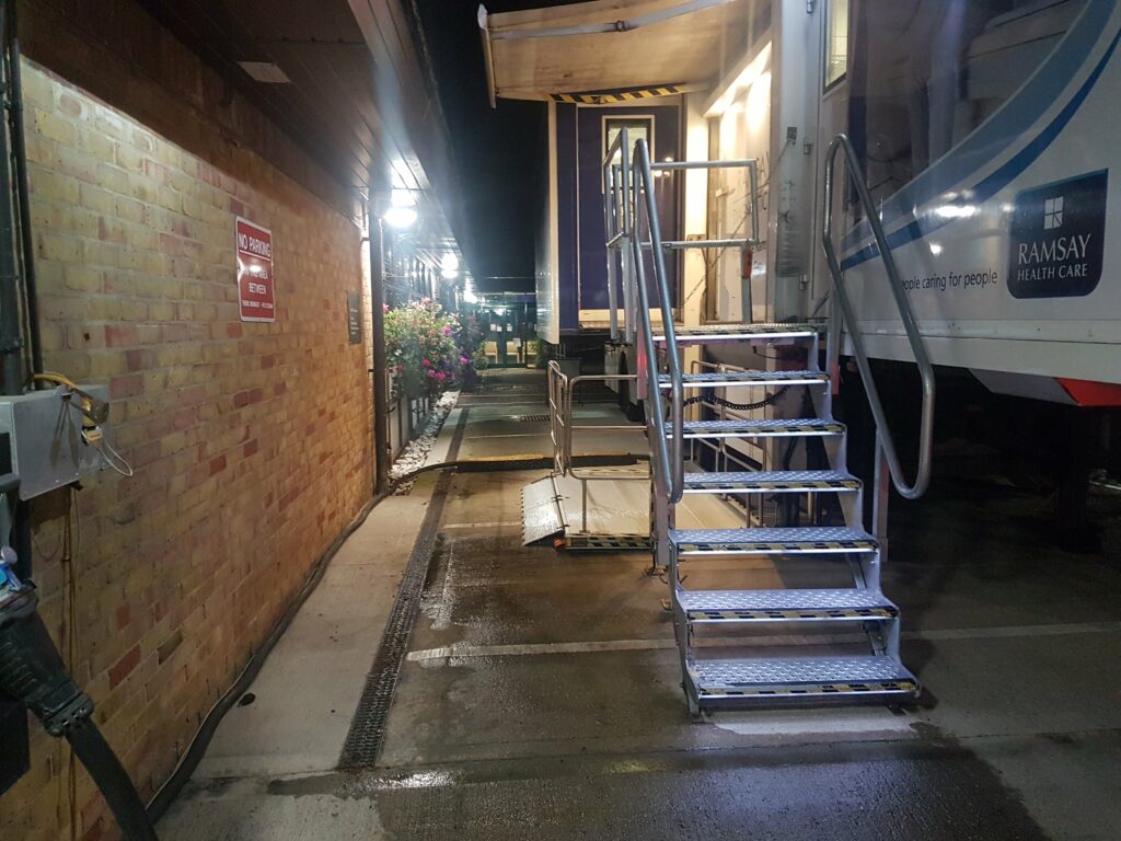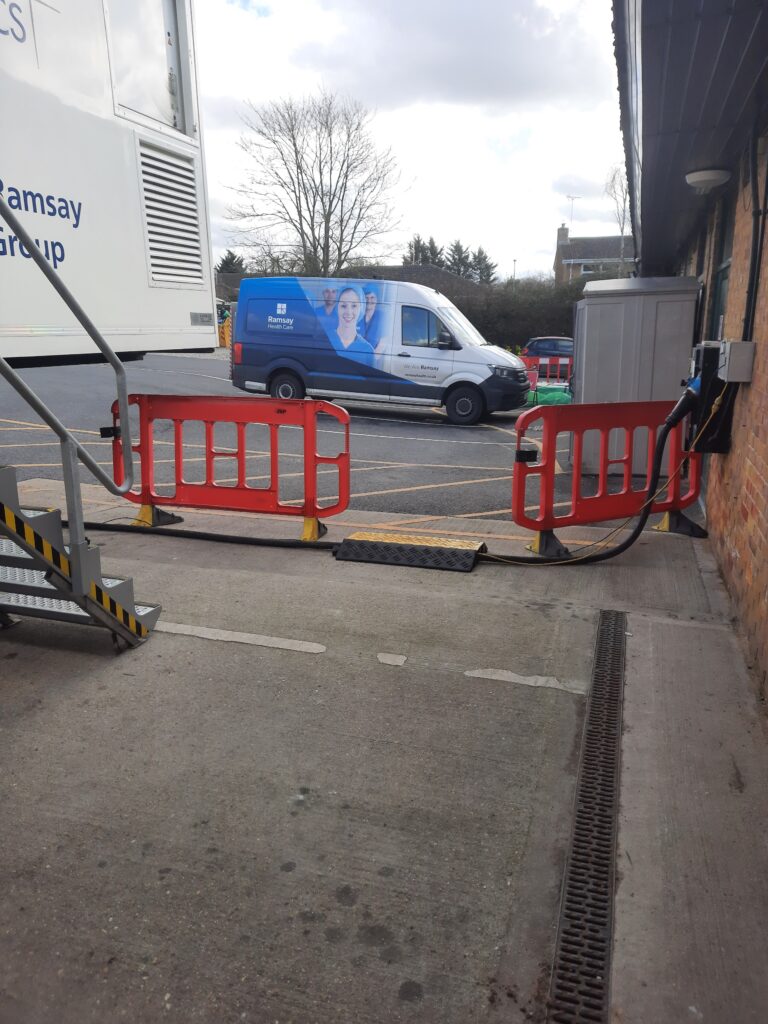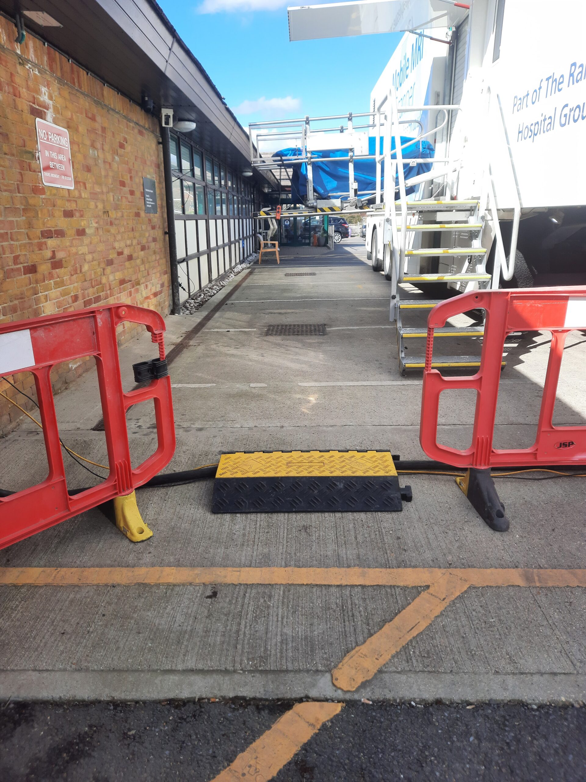 Patients now approach from the rear of the trailer, cables should run under the front of the trailer as in pictures