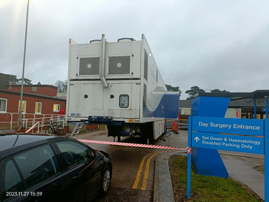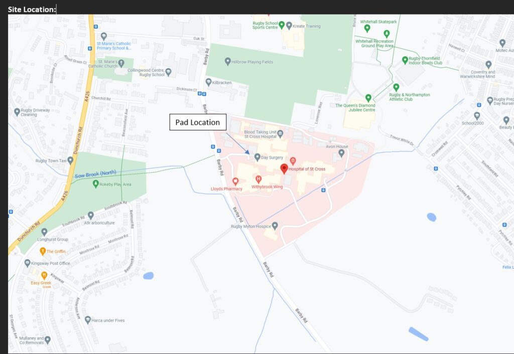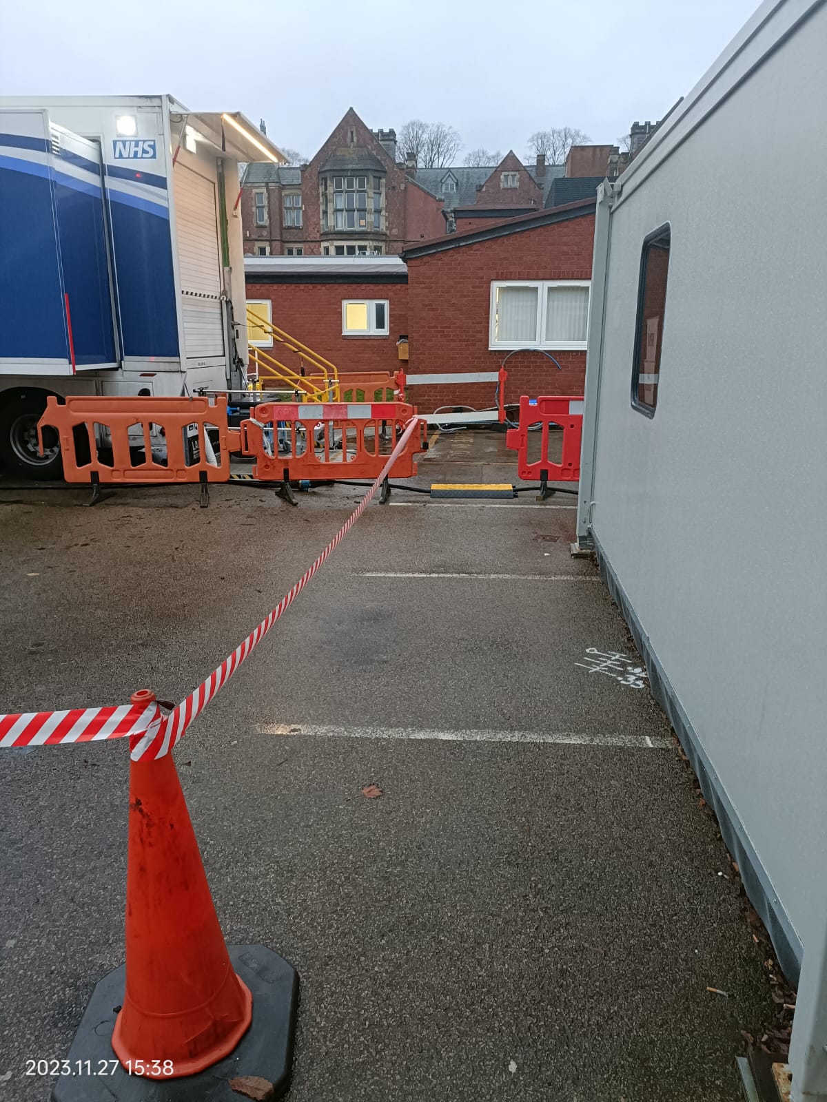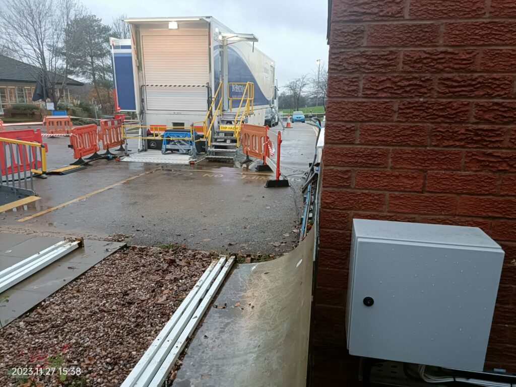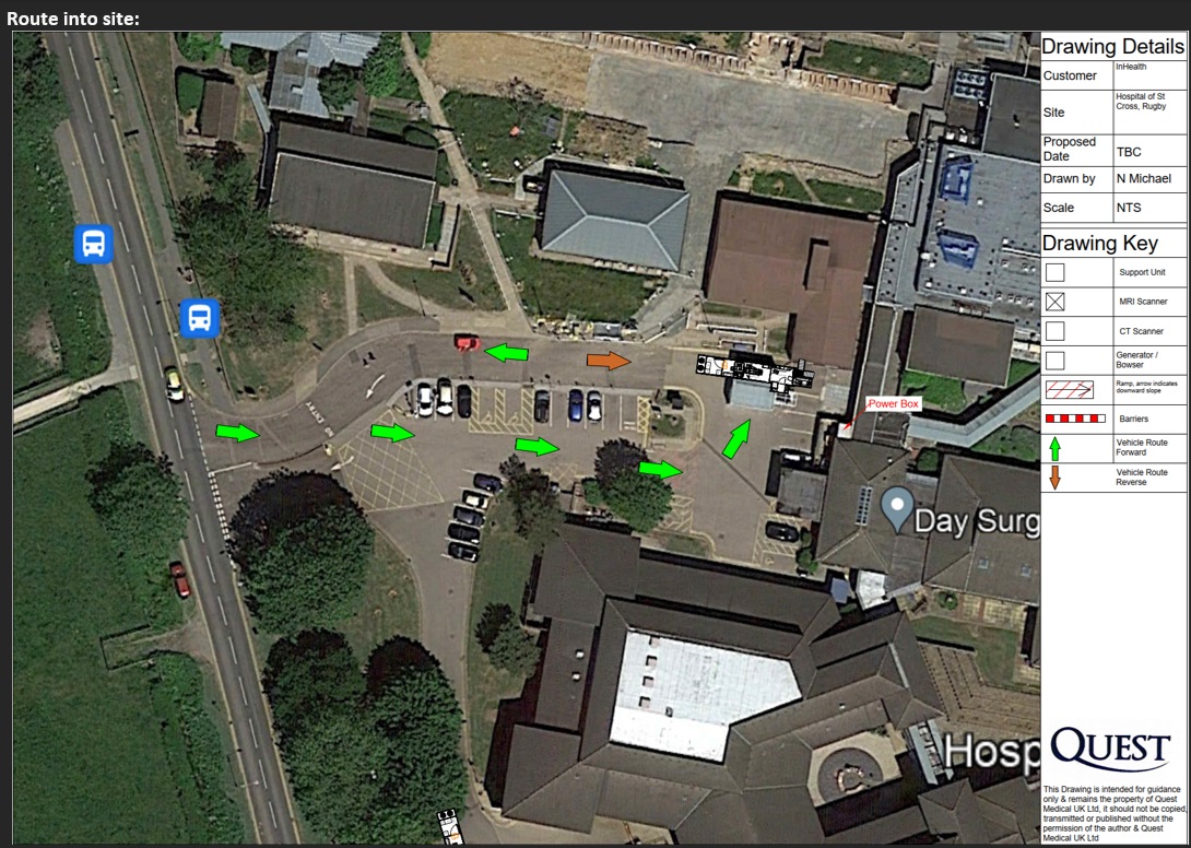 Site Notes: The pad is in the front car park of the hospital, the area slopes from rear to front of the trailer when reversed in.