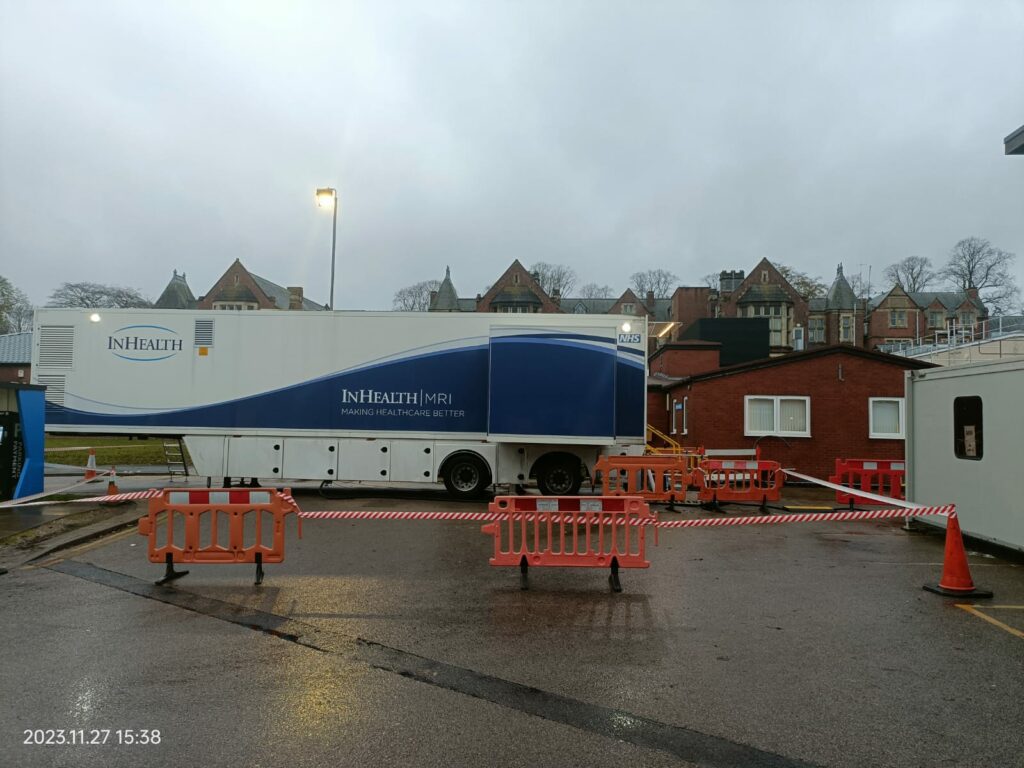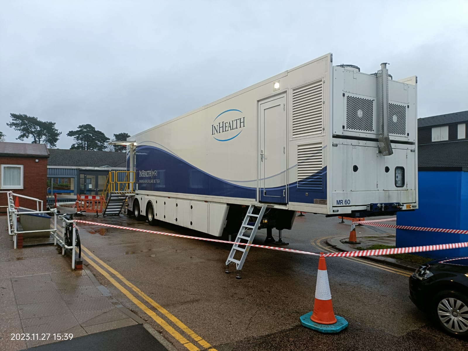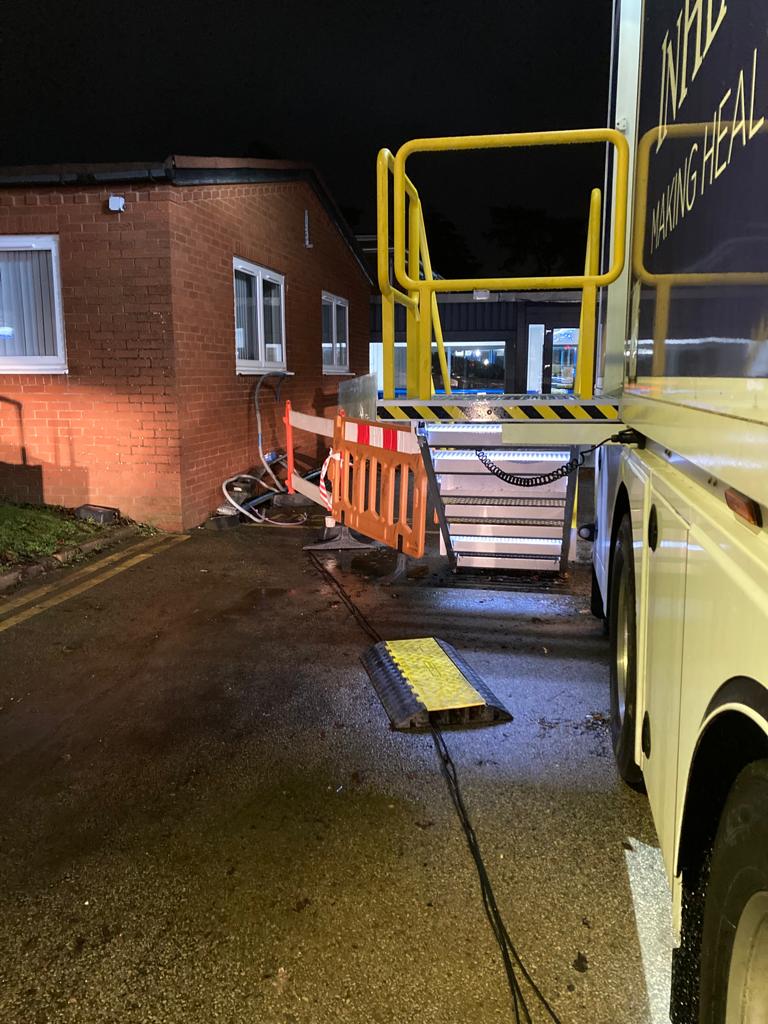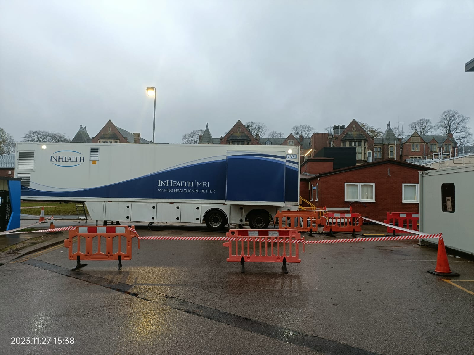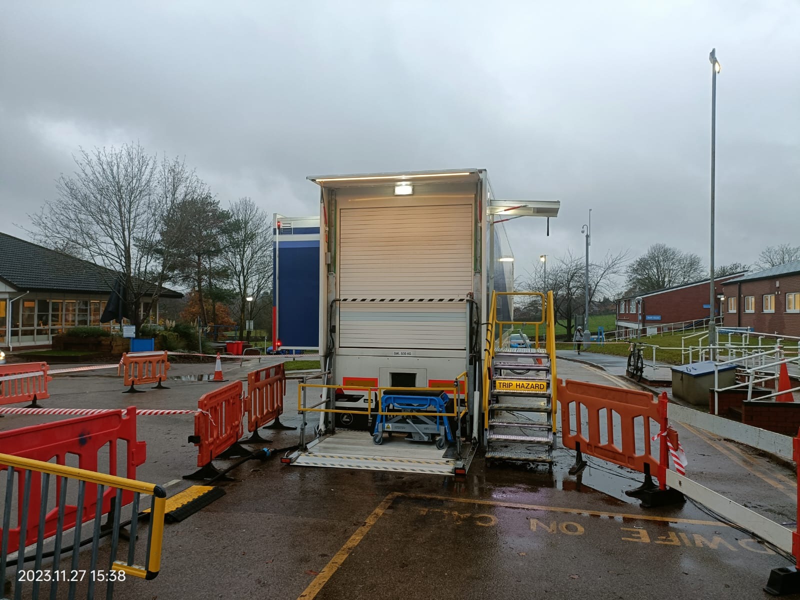 Site Notes: The pad is in the front car park of the hospital, the area slopes from rear to front of the trailer when reversed in.