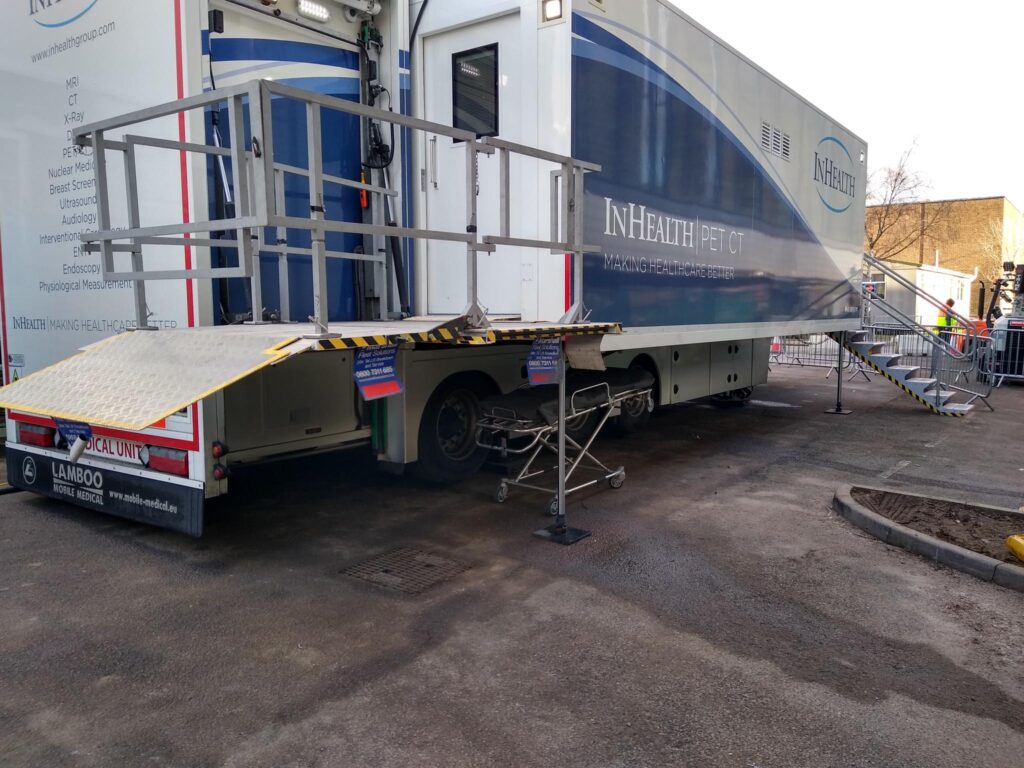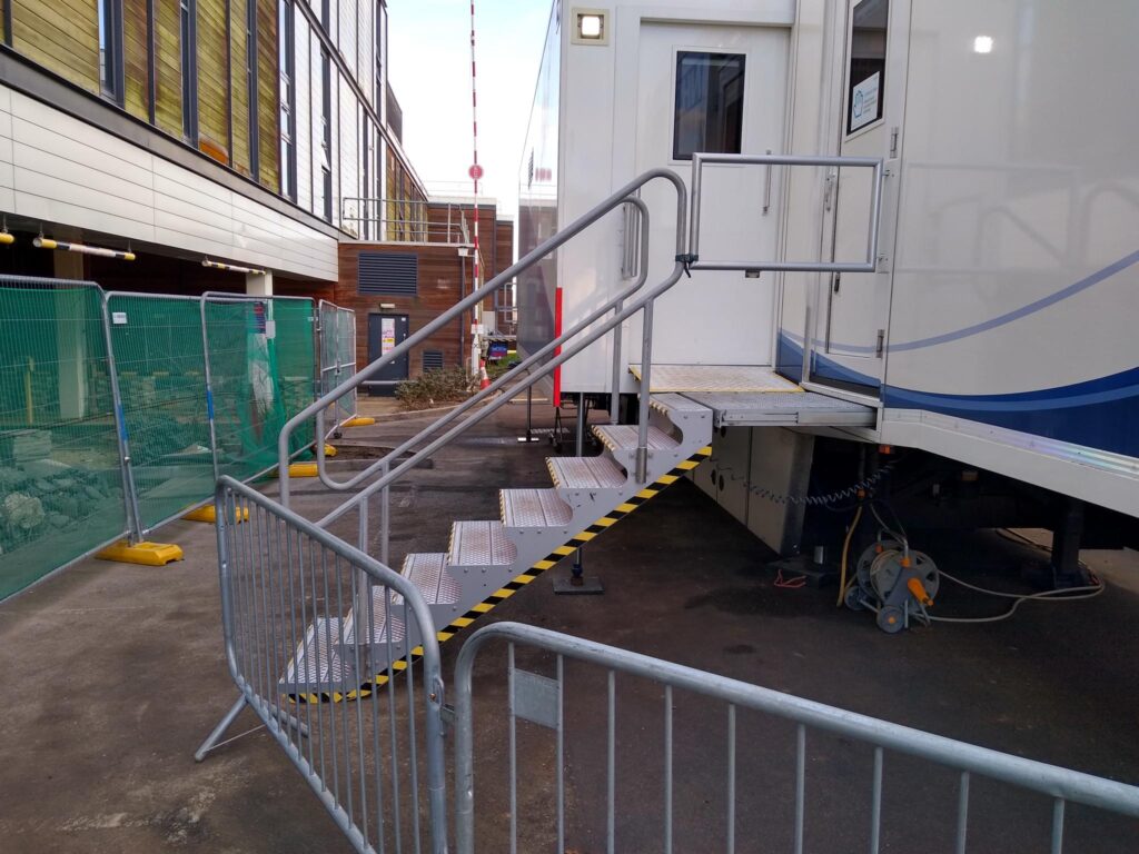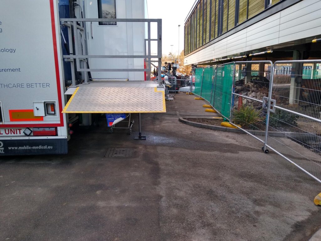 Site Notes: BEST WAY IN IS REVERSE OFF COREYS MILL LANE INTO HOSPITAL Power cable and data lines run under rear of trailer just in front of lift to power box