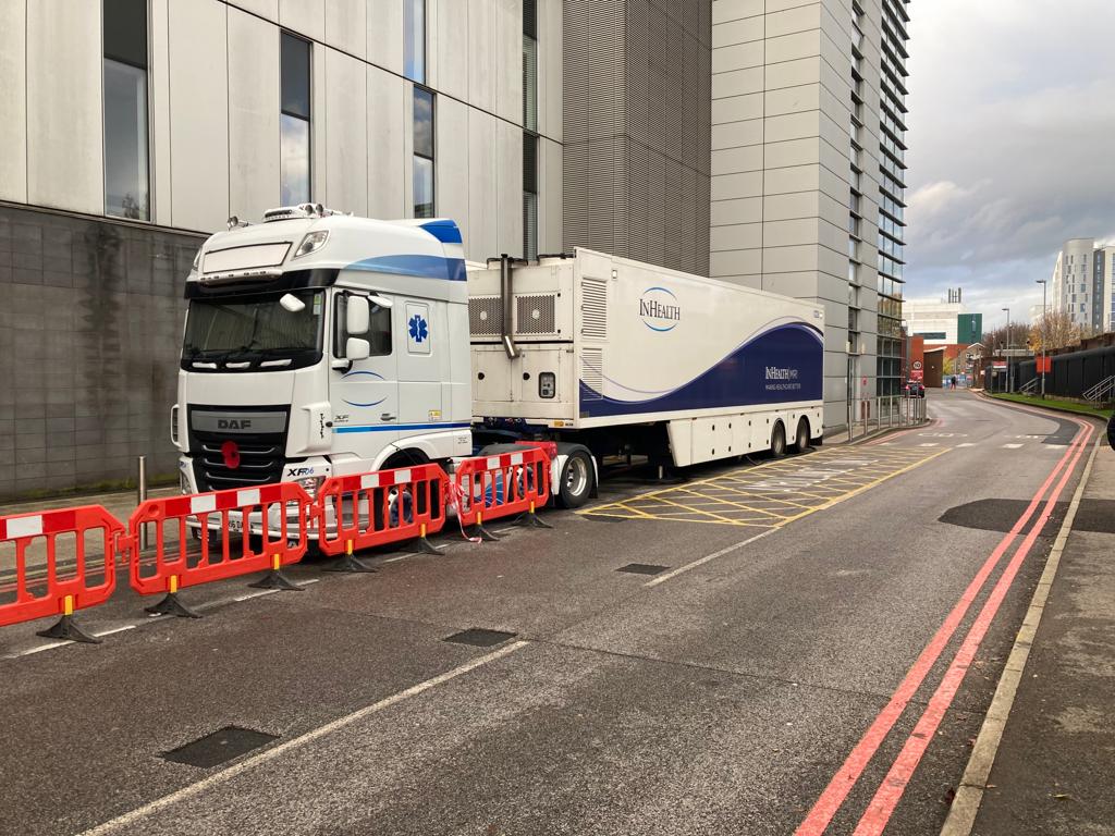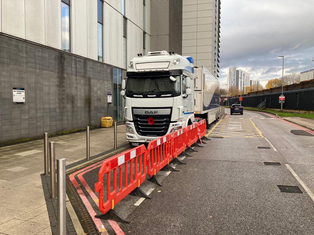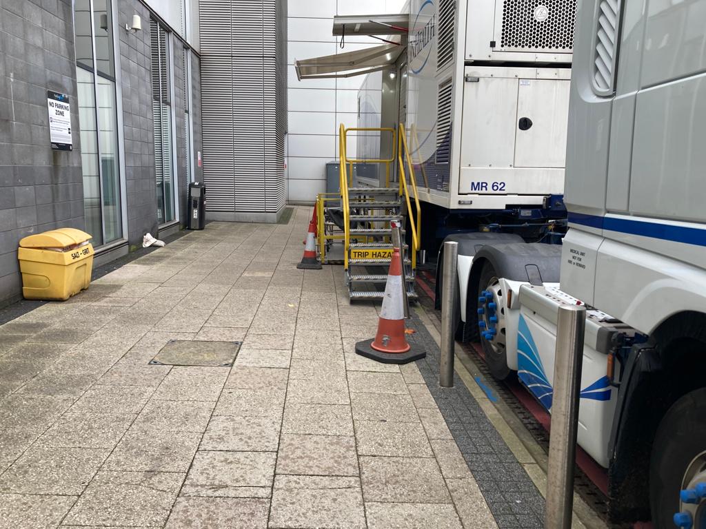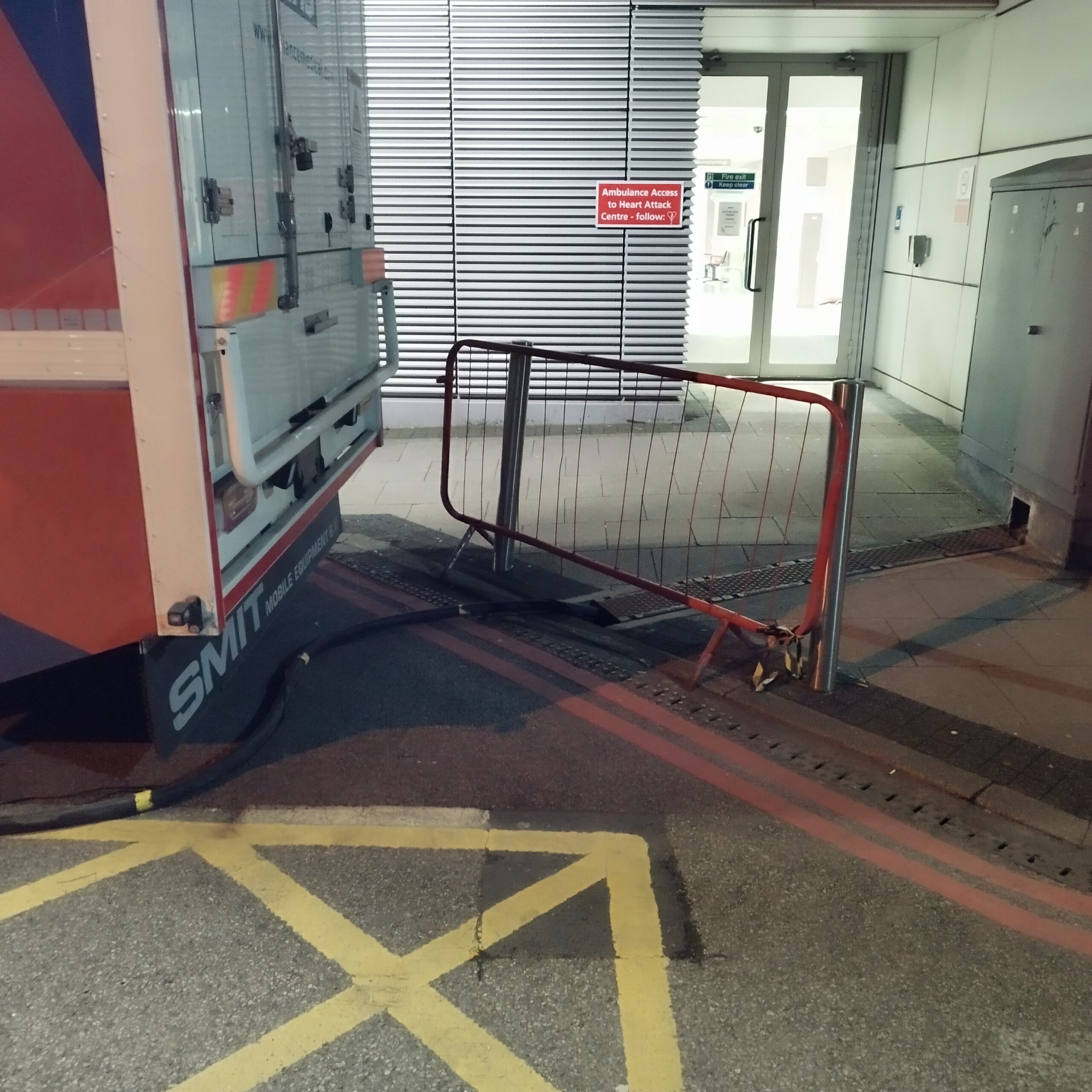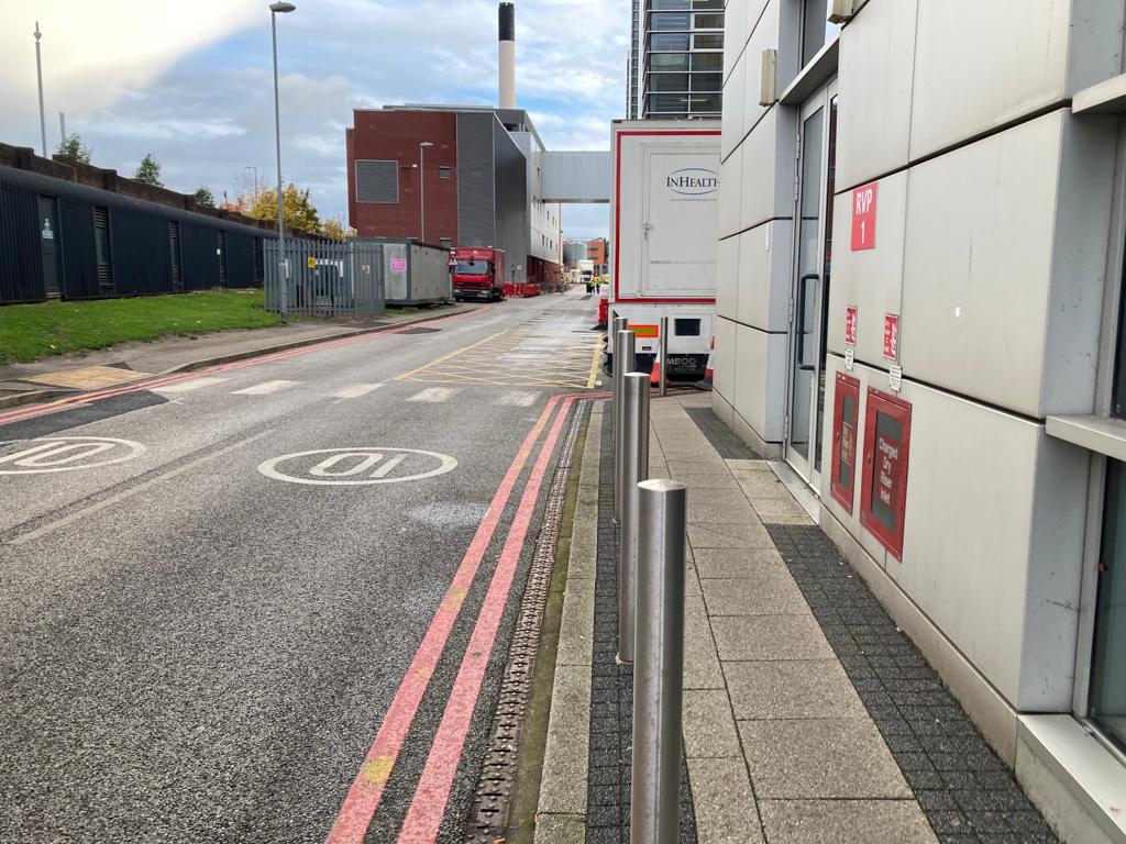 use the emergency vehicle entrance on A34. Turn left and follow the road until the hatched ambulance bay on the right.