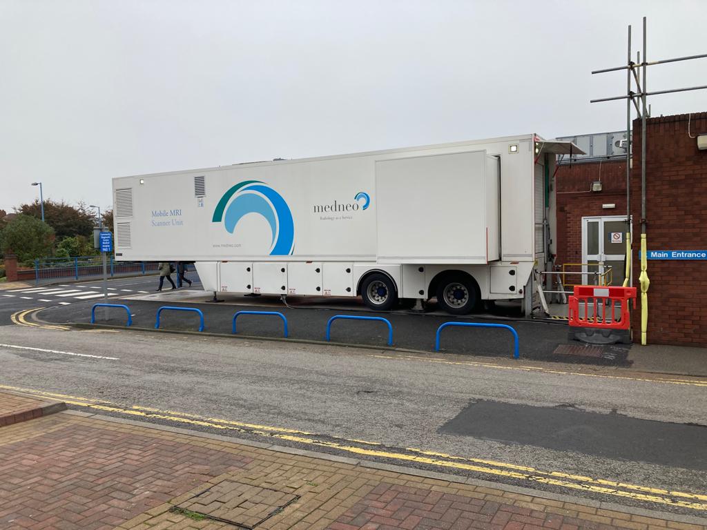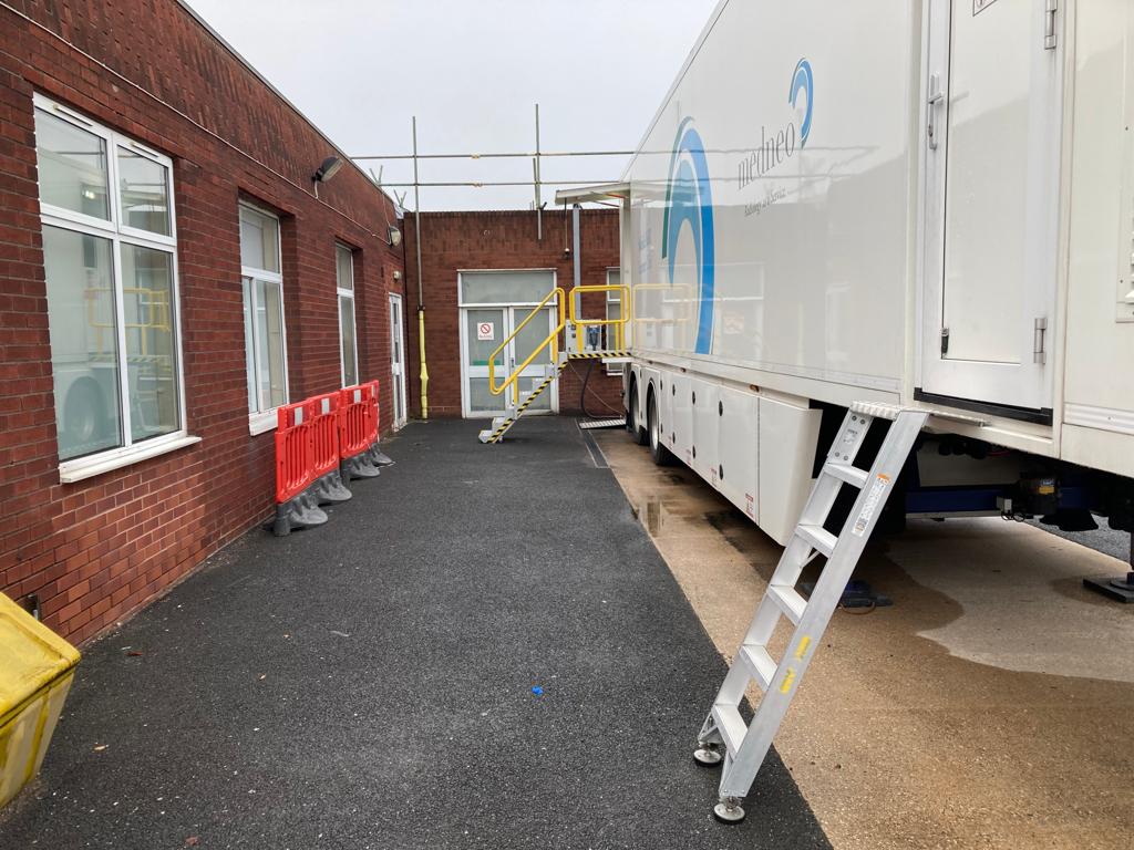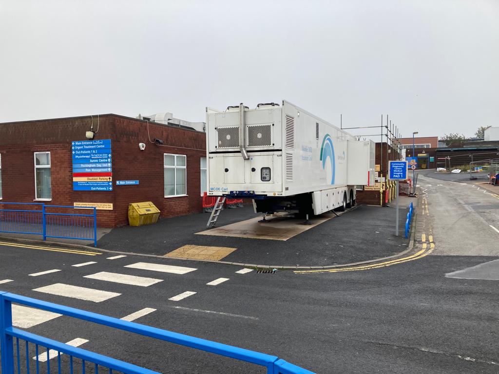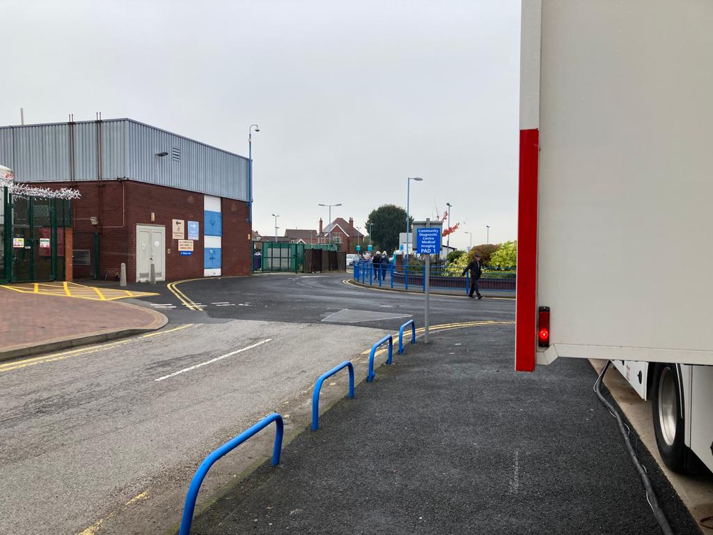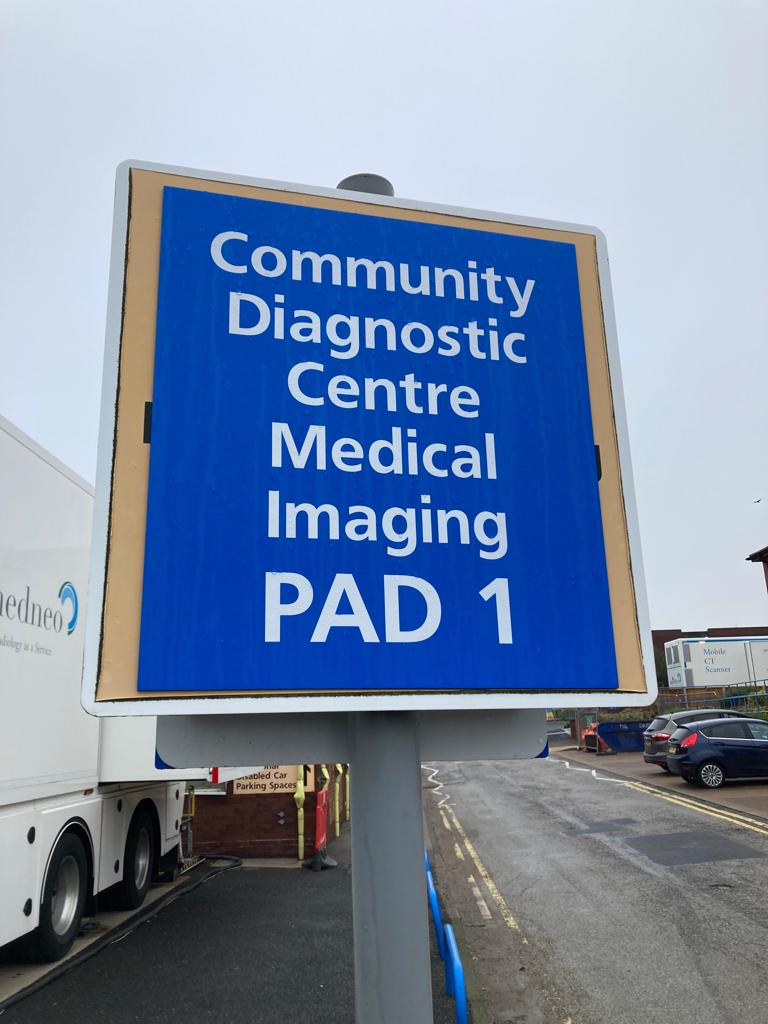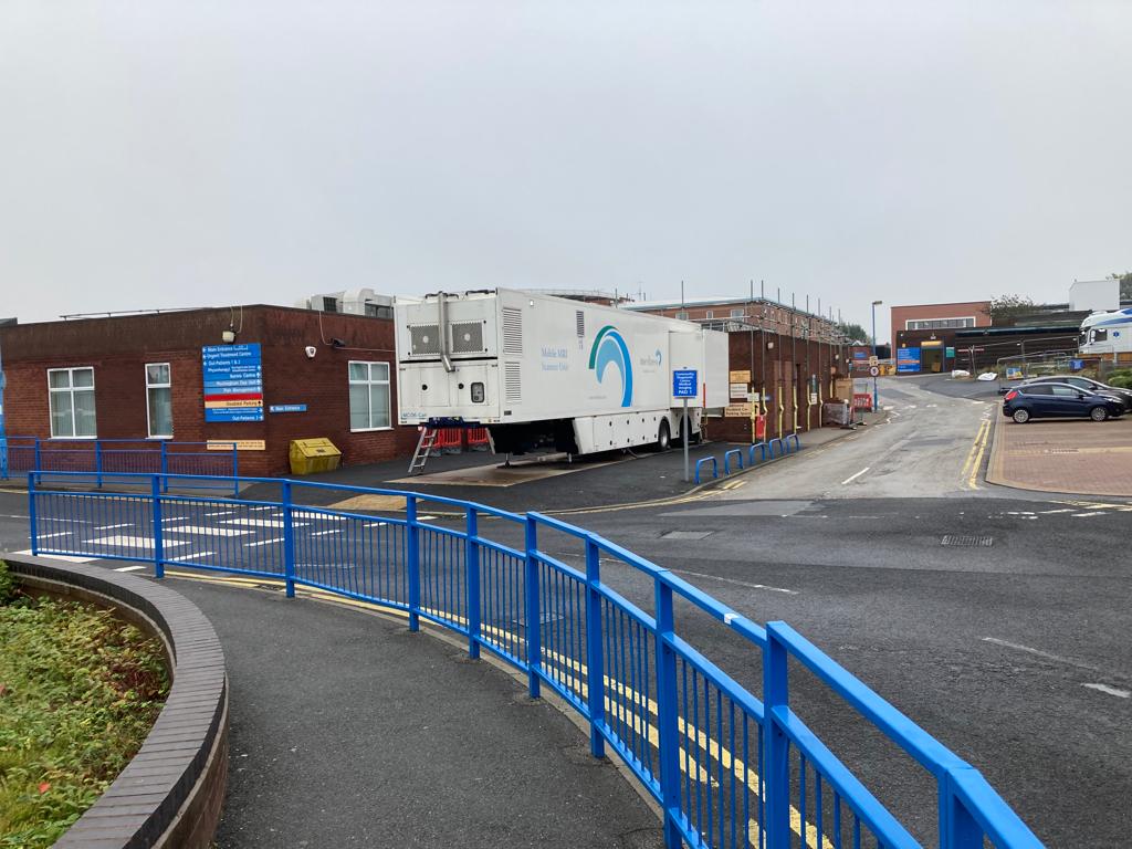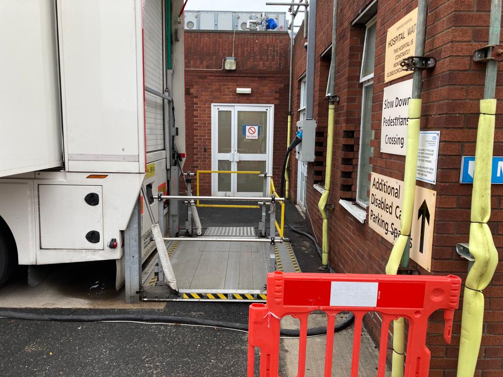Turn into the hospital from Adwick road, drive past the first MRI pad on left then turn right, reverse back onto the pad being cautious of the low barriers. Keep the nearside tyres on the very edge of the concrete pad this will allow enough space for access to the steps.