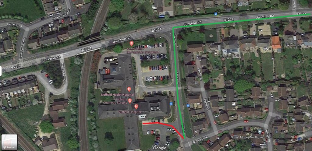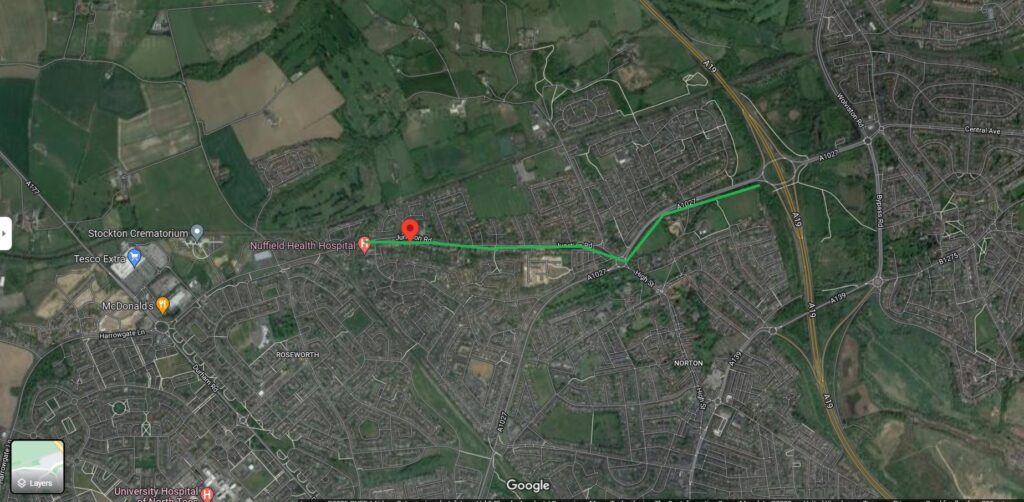 From A19 take A1027 towards North Tees General, follow signs for Norton, at the next roundabout take the 3rd exit B1274 through 7.5t limit, in 3,4 of a mile the hospital will be on your left. Turn left into Glebe Road, then reverse into the second entrance.