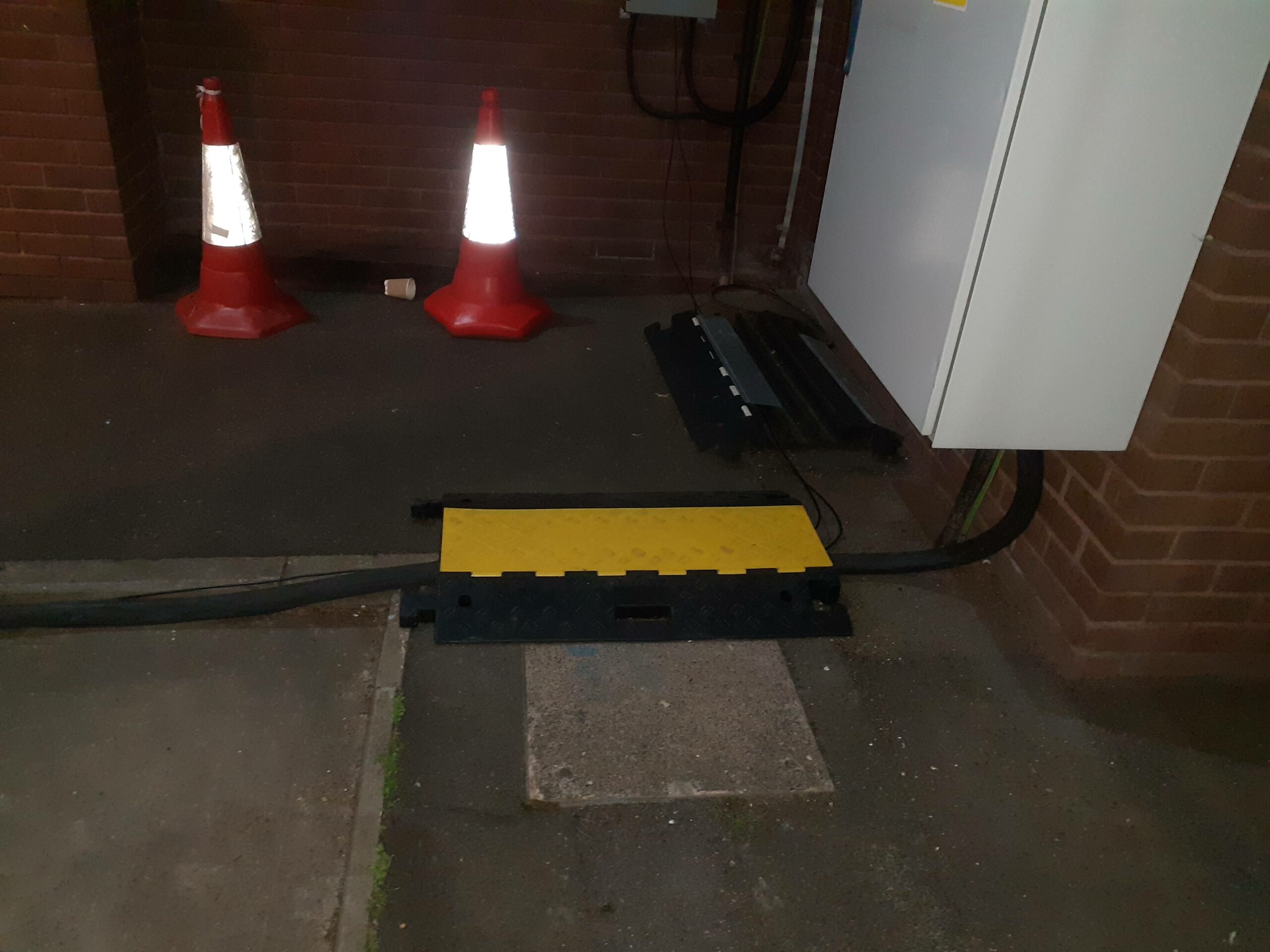 Cable Guard Notes: See photos, the cable guard stays on site.