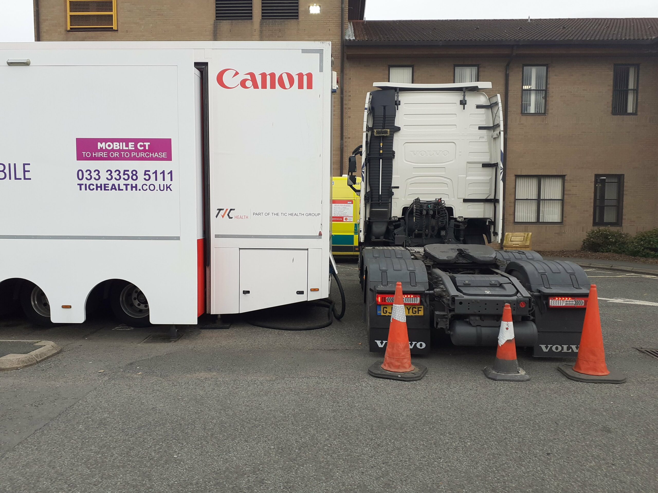 Site Notes: The pad will come up on the right along side the protruding canopy. Place the n/s of the trailer along side the left hand island.