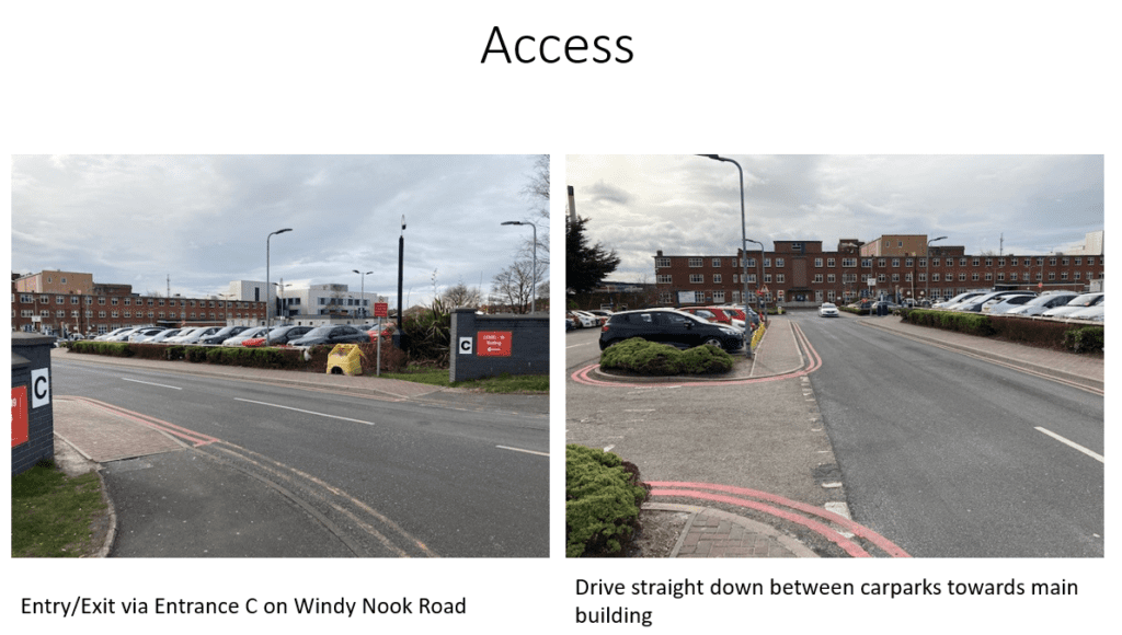 Lift/stairs to face main hospital building (Windy Nook Entrance)