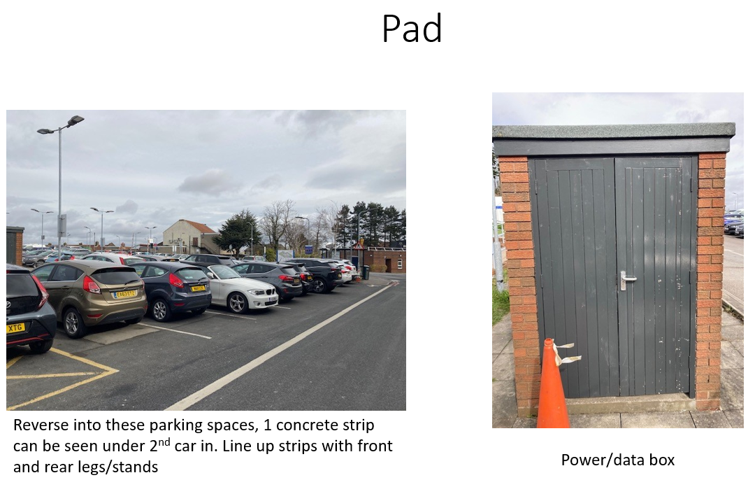 Site Notes: Pad has 2 concrete strips, ensure front and rear legs/stands are in line with strips