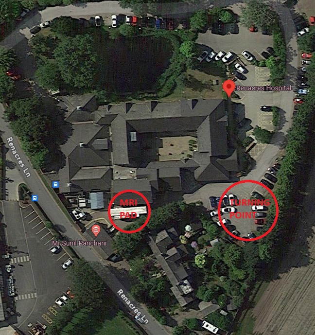 Parking Details: Use the first carpark on the left as you turn into the hospital, see the picture. Reverse between wooden posts and park under the tree