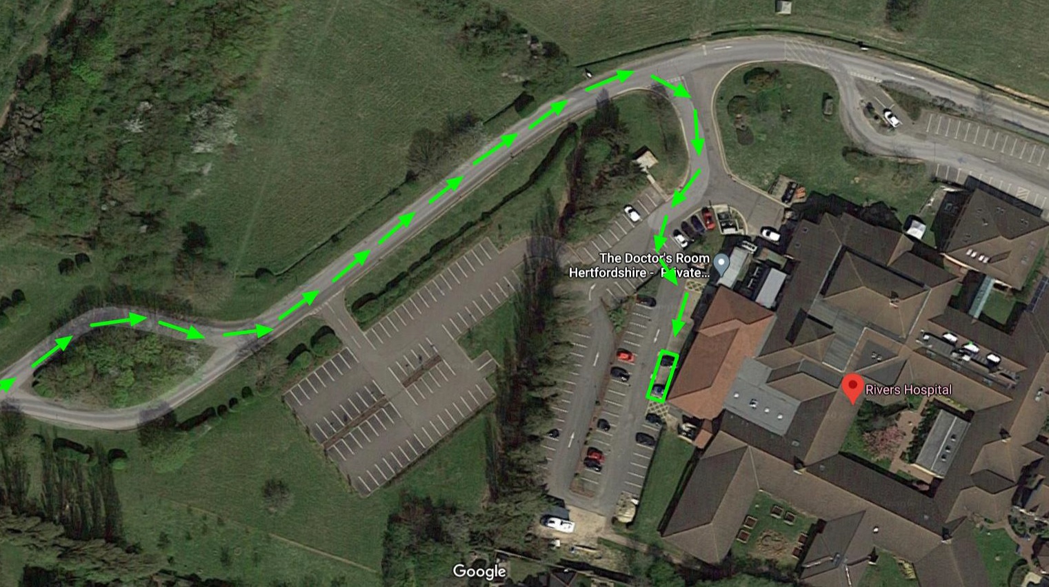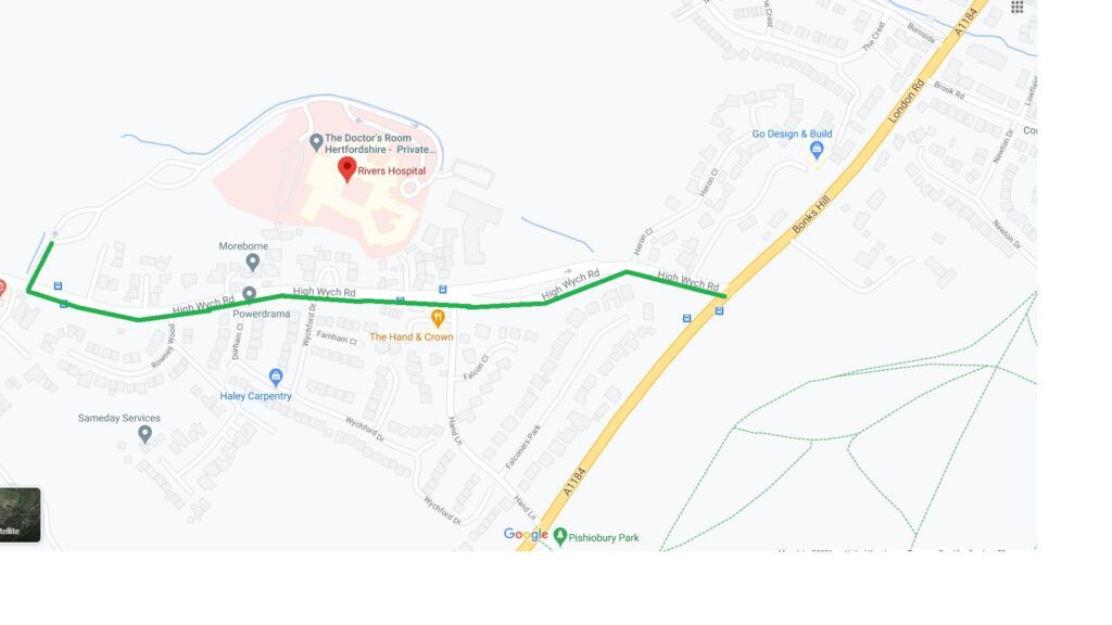 Best Approach: Hospital is accessed through a 7.5-ton weight limit on High Wych Rd.