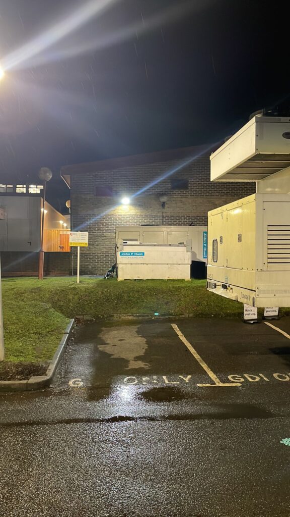 Site Notes: To turn the generator on, firstly open the panels and make sure the battery isolator switch is on. push the white button with the hand on and then push the green power button, after several seconds the light below the ‘~’ button will light up green.