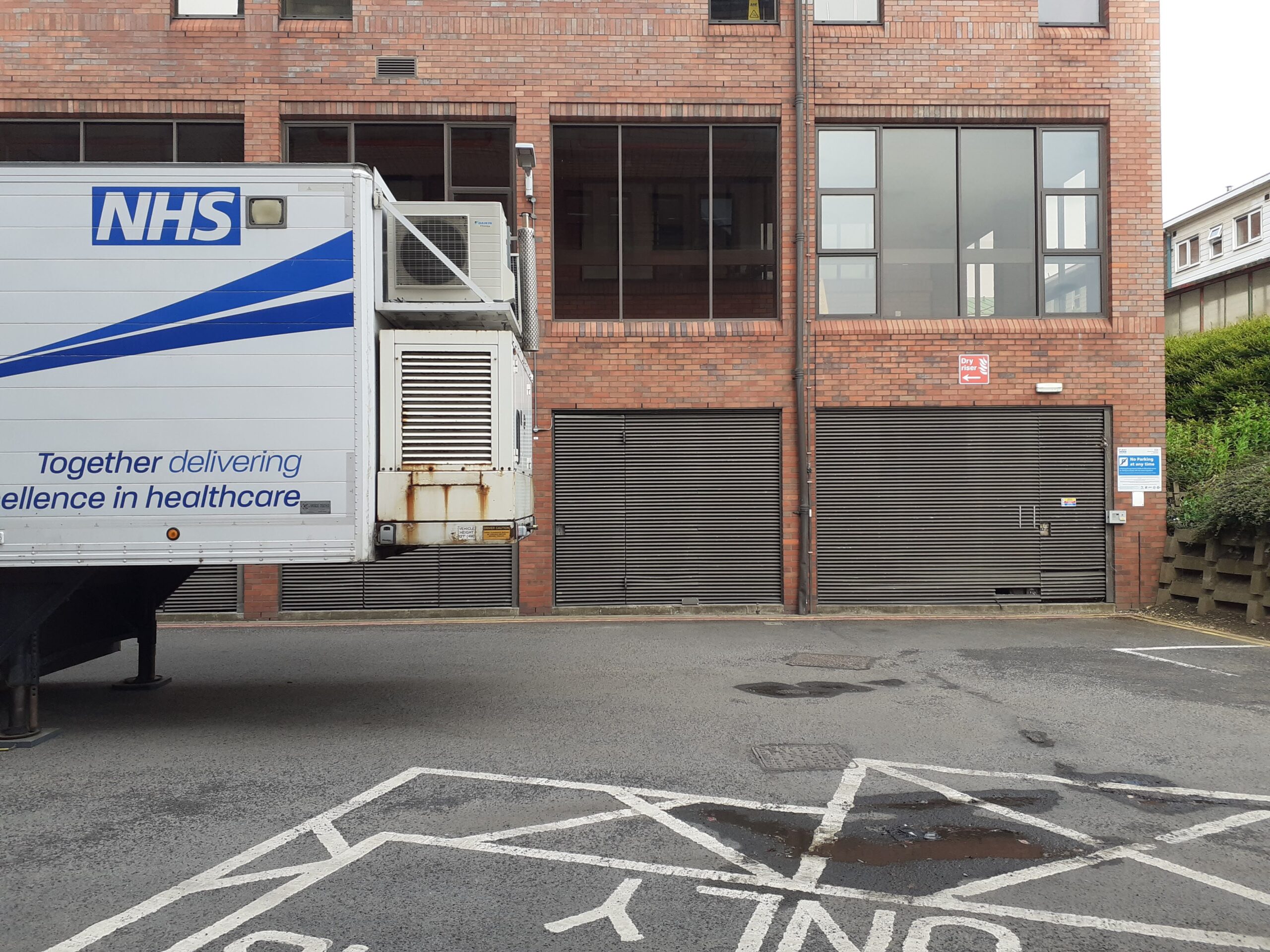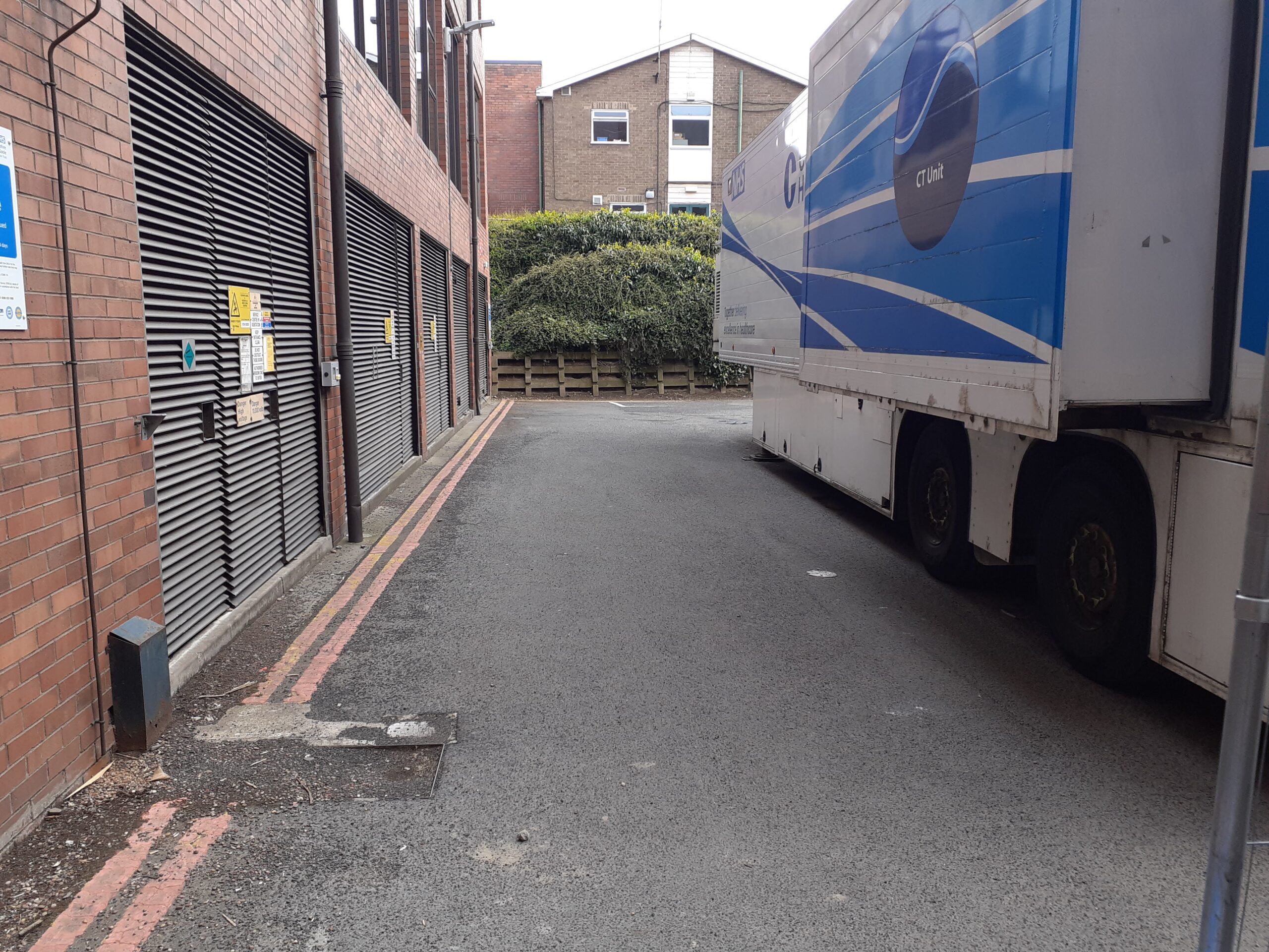 Site Notes: Enter hospital from Church Lane, turn left at the mini roundabout then reverse back in front of building to the pad, see satellite image.