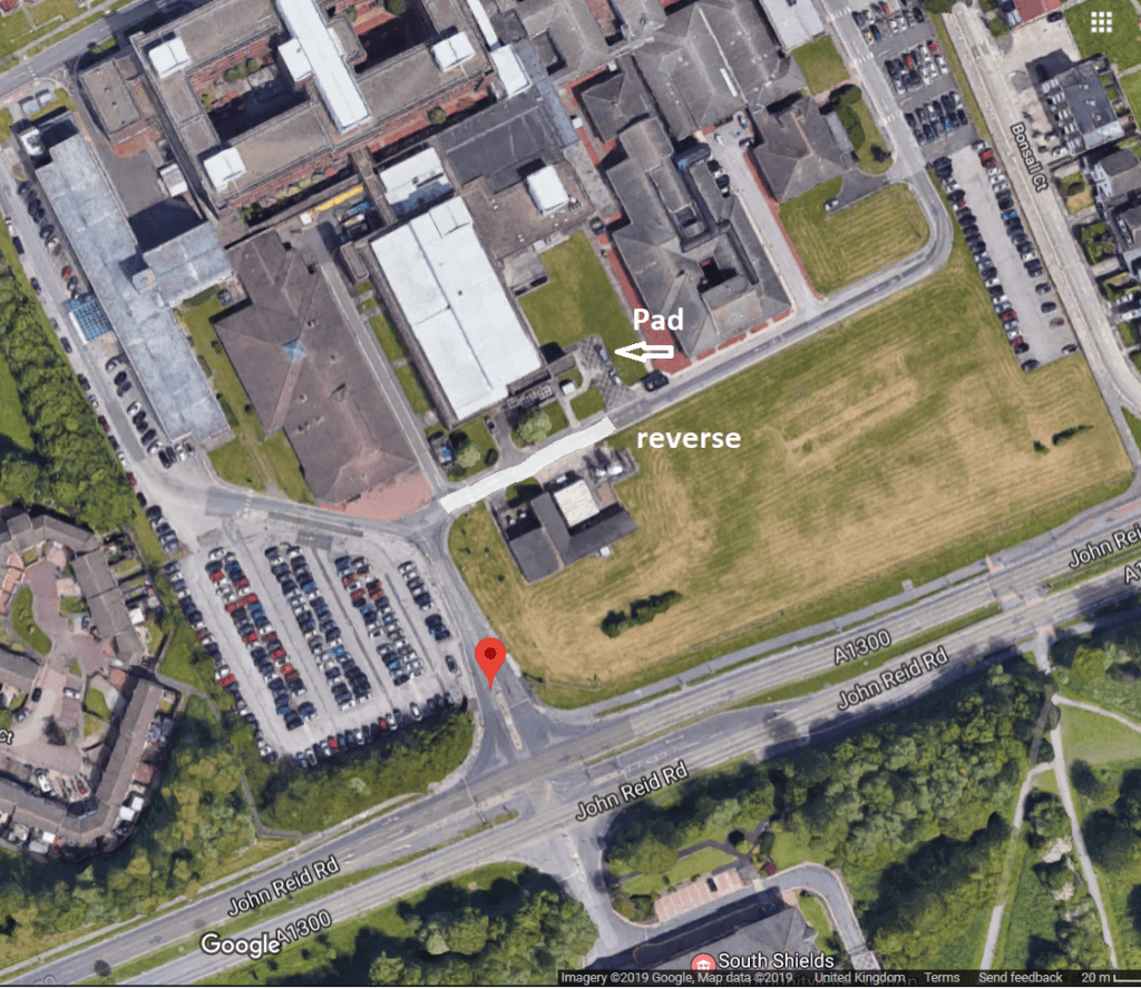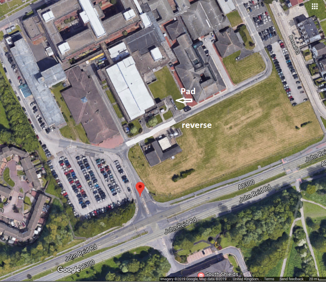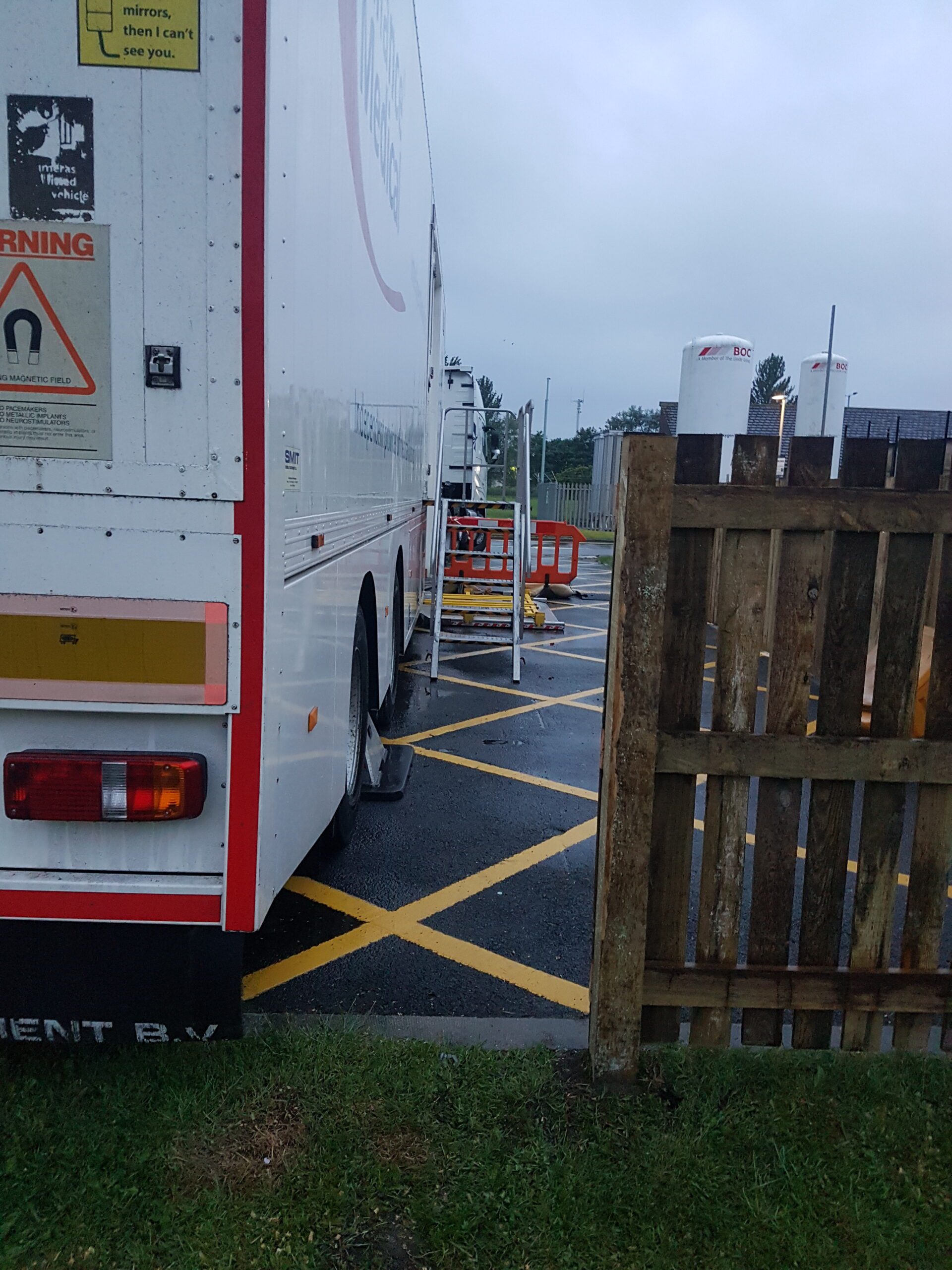 Site Notes: Enter site then turn left, reverse back down one way system, tarmac pad opposite BOC oxygen tanks.