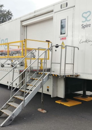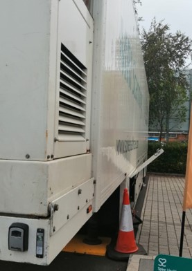 The trailer must be positioned as per photographs, the front of the trailer needs to be level to the corner of the grey power building. This is to leave a meter or so at the rear of the trailer, this is so they can get the gurney around the back of the trailer if a patient has a cardiac arrest.