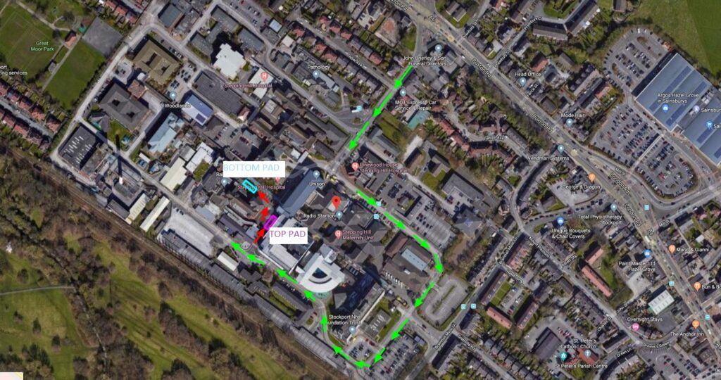 Best Approach: Buxton Road, Poplar Grove. When entering hospital turn left at roundabout and follow road around hospital to next roundabout.
