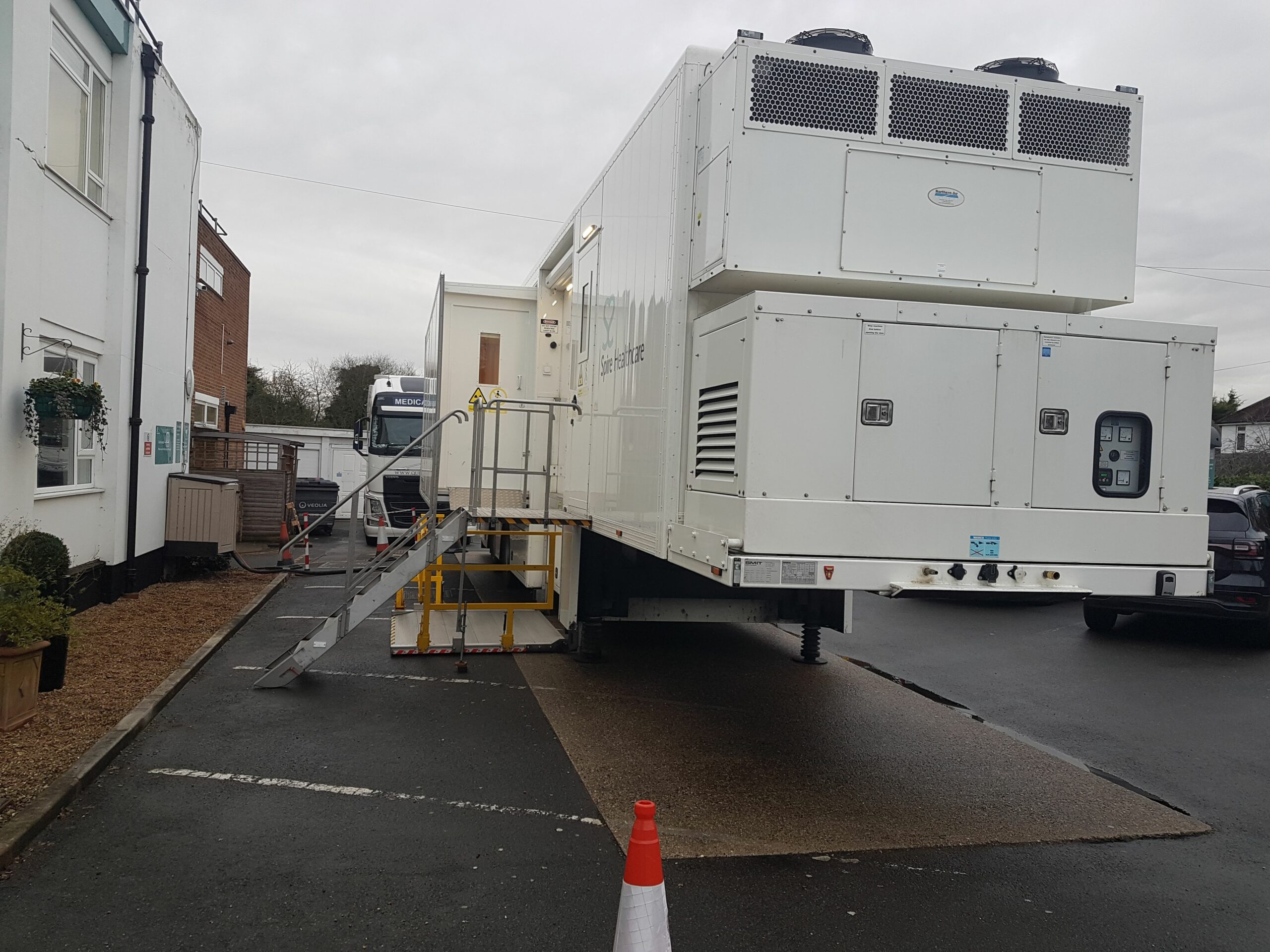 Site Notes: Pull into hospital and turn left, reverse onto concrete pad, keep nearside wheels to edge of pad to allow for more step room.