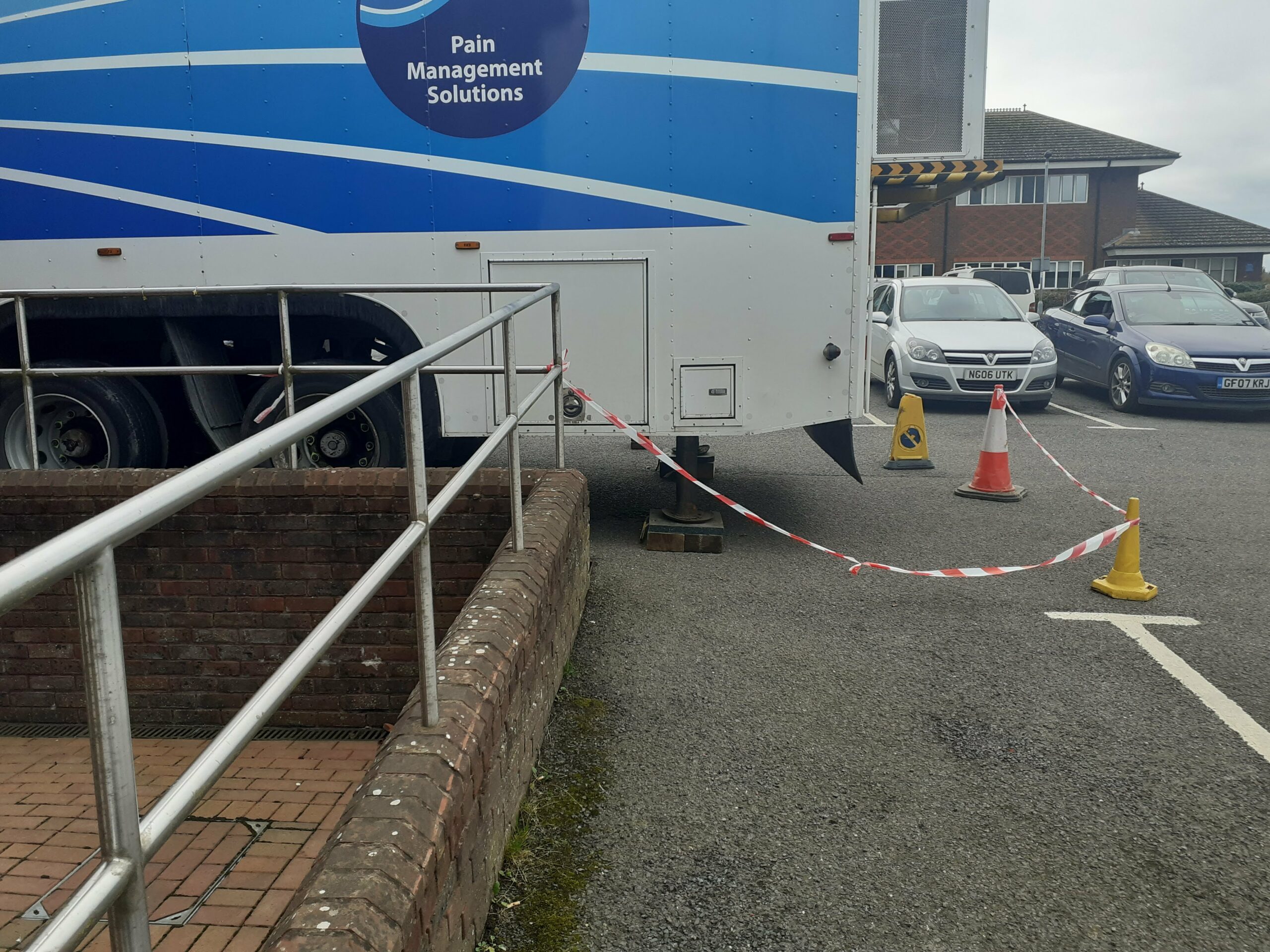 Site Notes: Drive-in, the nearside of the trailer goes against the railings leaving room for belly lockers to open.
