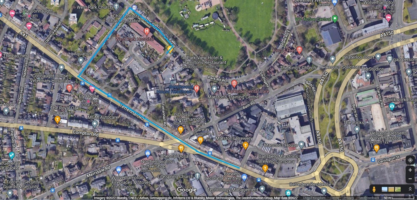 Best Approach: Off Ring Rd A4150 onto A41 Tettenhall rd.
