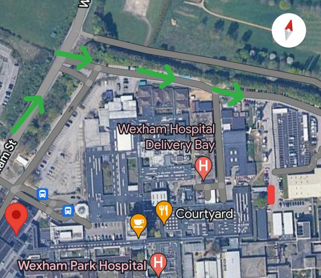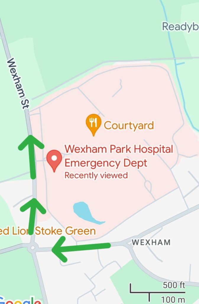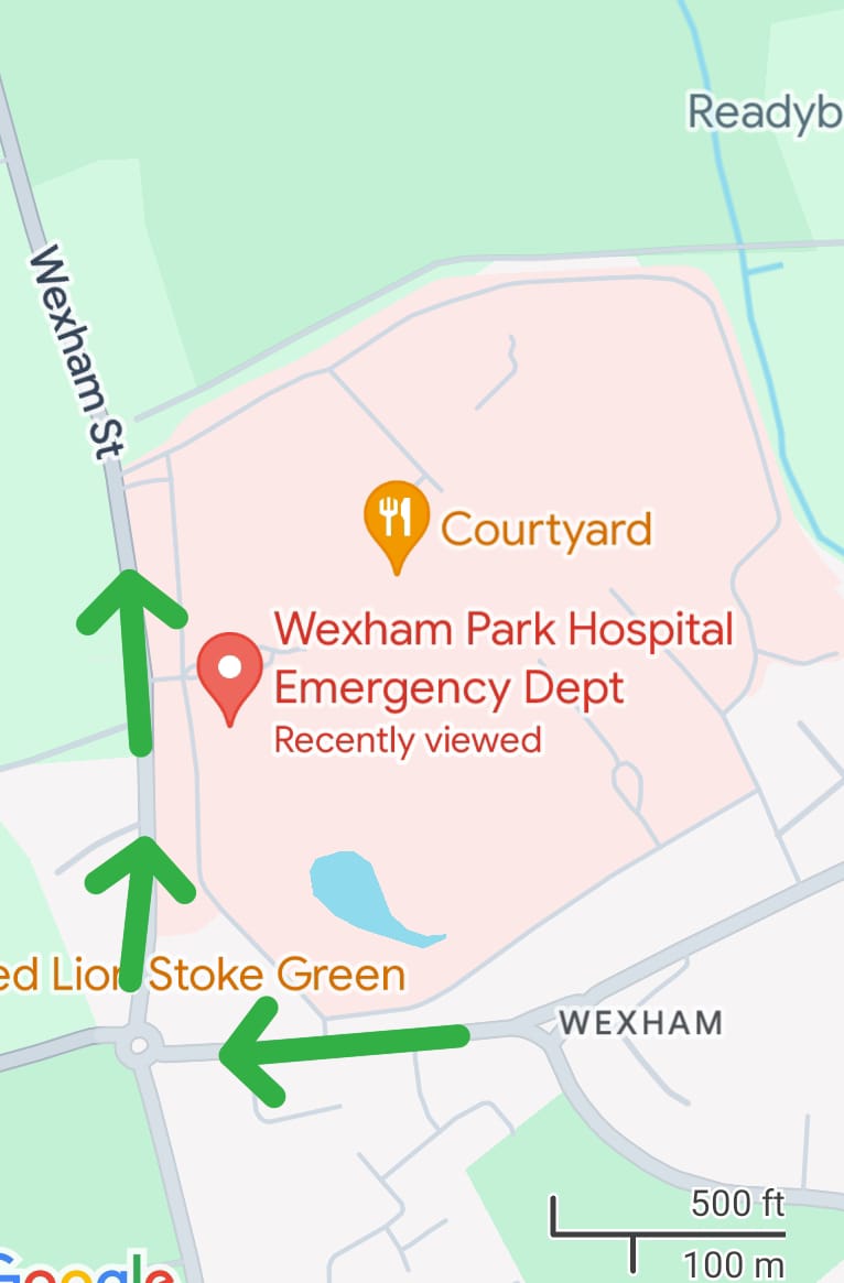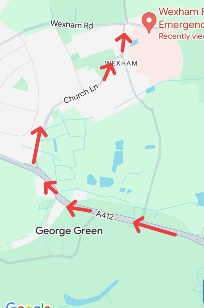 Best Approach: M40 j1, A412, right onto Church Lane, at roundabout turn right into Wexham street. Entrance on right.