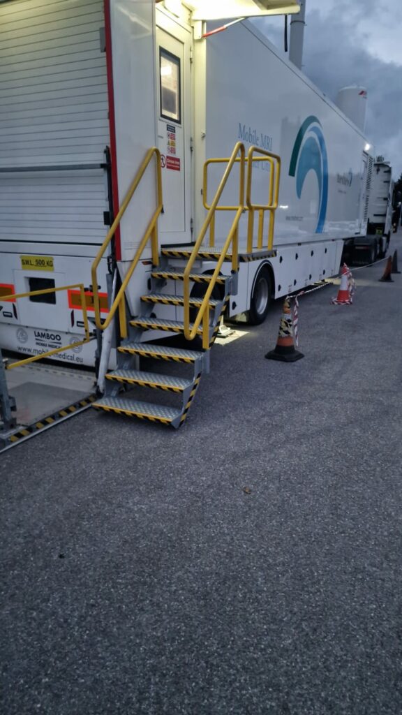 Some of the newer Smit MRI’s now have a rear barrier that MUST be raised as part of the setup and lowered for transport. Any problems must be reported to transport before leaving site