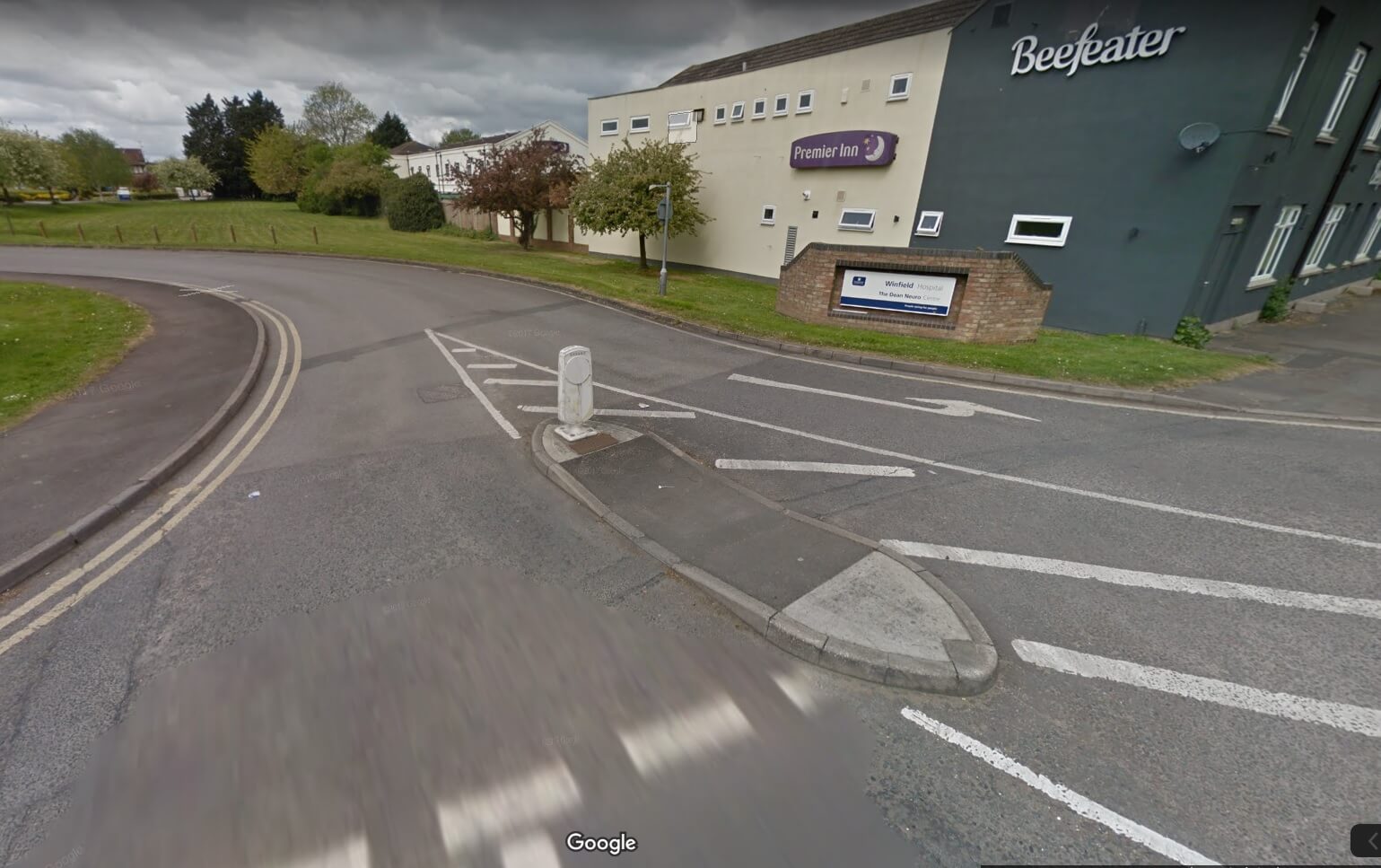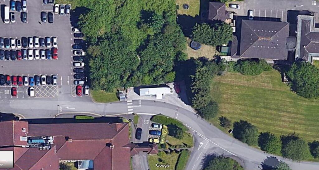 Best Approach: Tight turn into hospital drive, if clear go wrong side of bollards.